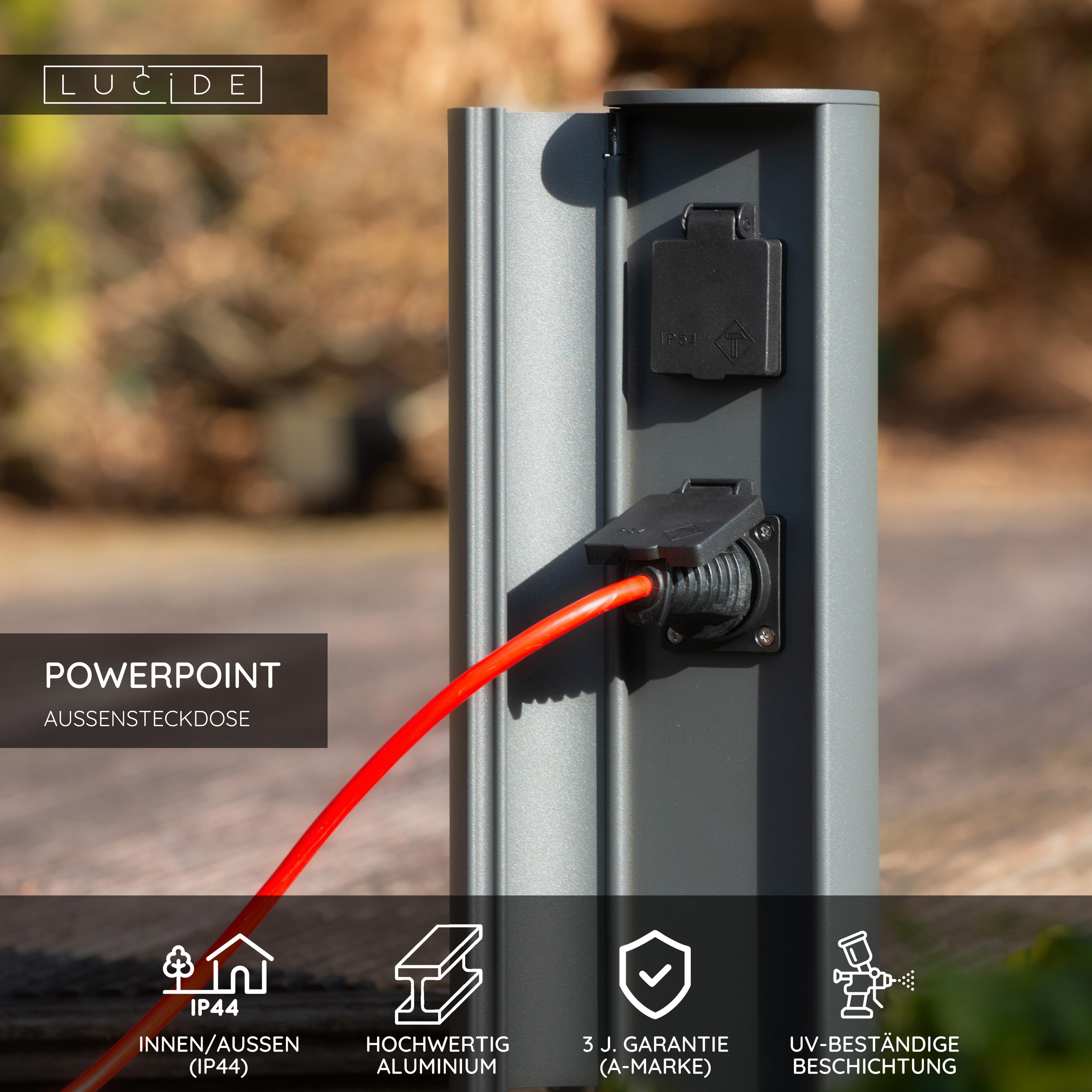 Lucide POWERPOINT - Steckdosensäule für den Außenbereich - Steckdose mit Erdungsstift - Typ E - FR, BE, POL, SVK & CZE Standard - Ø 10 cm - IP44 - Anthrazit