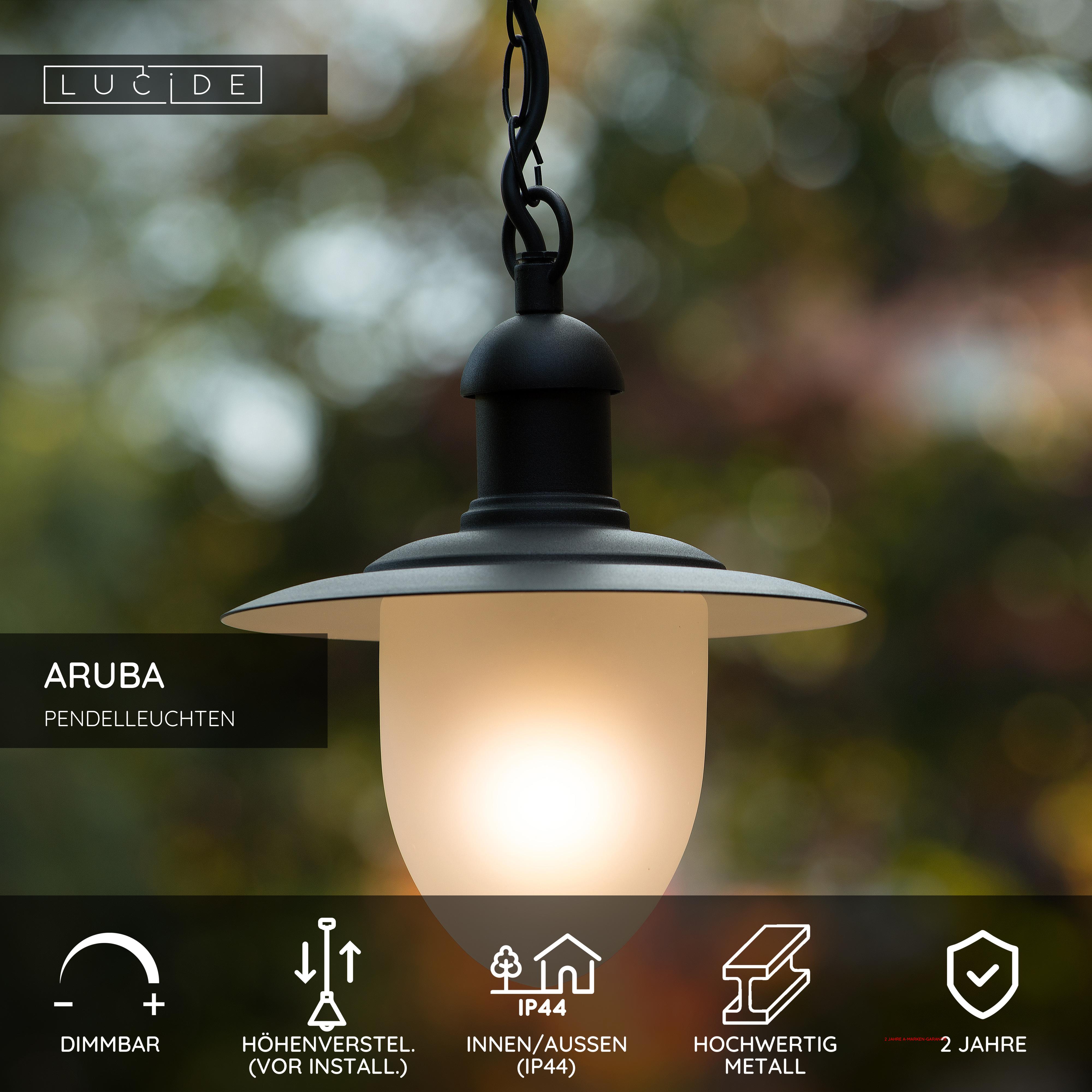 Mit dem Motto darf es auch ländlich sein? heißen Cottage-Liebhaber die Aruba-Lampe willkommen. Diese Hängelampe ist sogar 78 Zentimeter hoch und passt damit ausgezeichnet über dem Terrassentisch! Als Gartenlaterne verteilt diese Aruba mit einer Lichtquelle bis zu 60W ein angenehmes Licht. Ein anderer Trumpf ist die Möglichkeit, die Lampe einem Dimmer anzuschließen, damit Sie Ihren Gästen die richtige Stimmung verleihen können. Mithilfe einer energieeffizienten Lichtquelle bekommt diese Lampe Energielabel A++. Die helle Beleuchtung wird damit kein Opfer eines höheren Verbrauches.