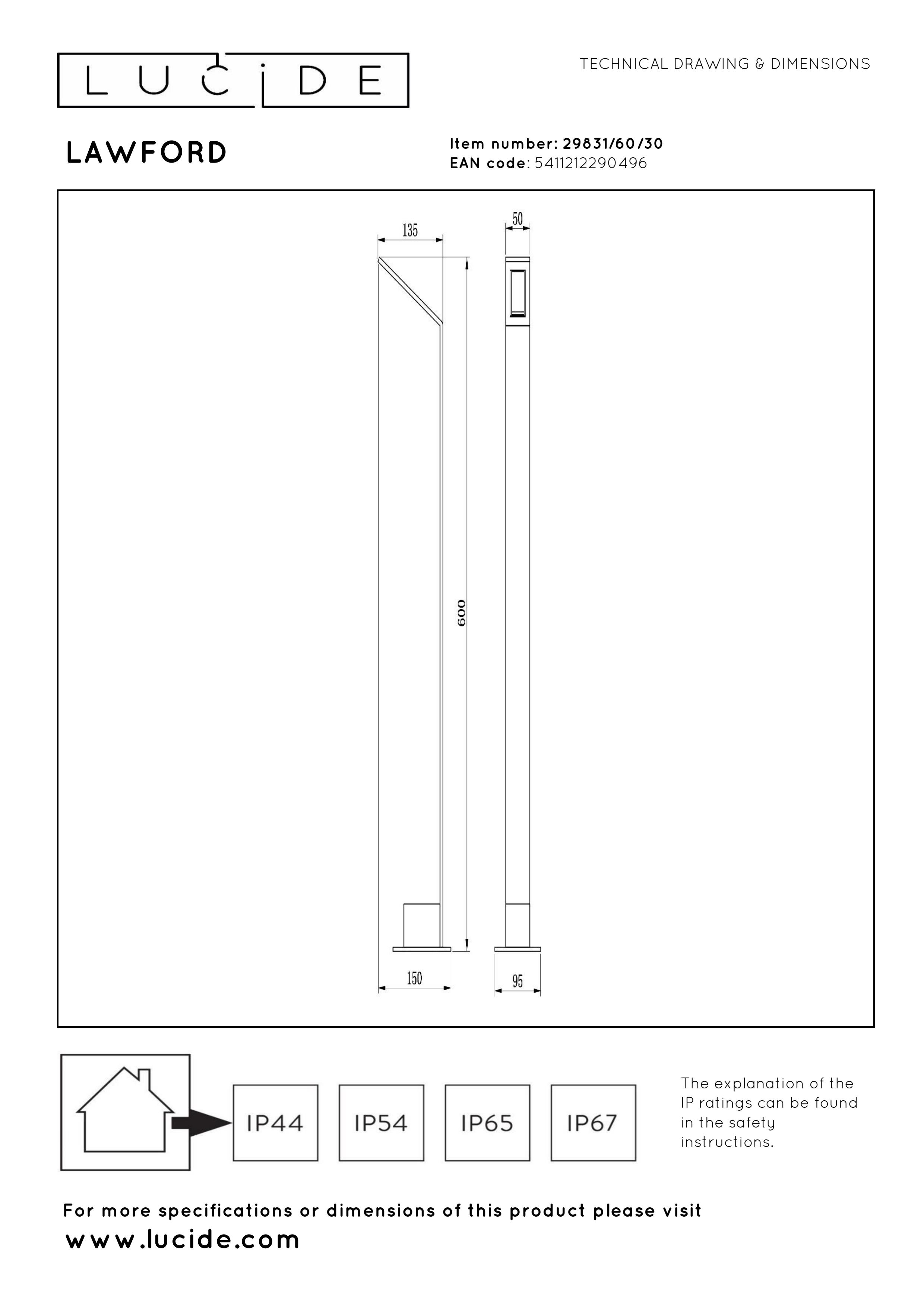 Lucide LAWFORD - Pollerleuchte - LED - 1x6W 3000K - IP54 - Schwarz