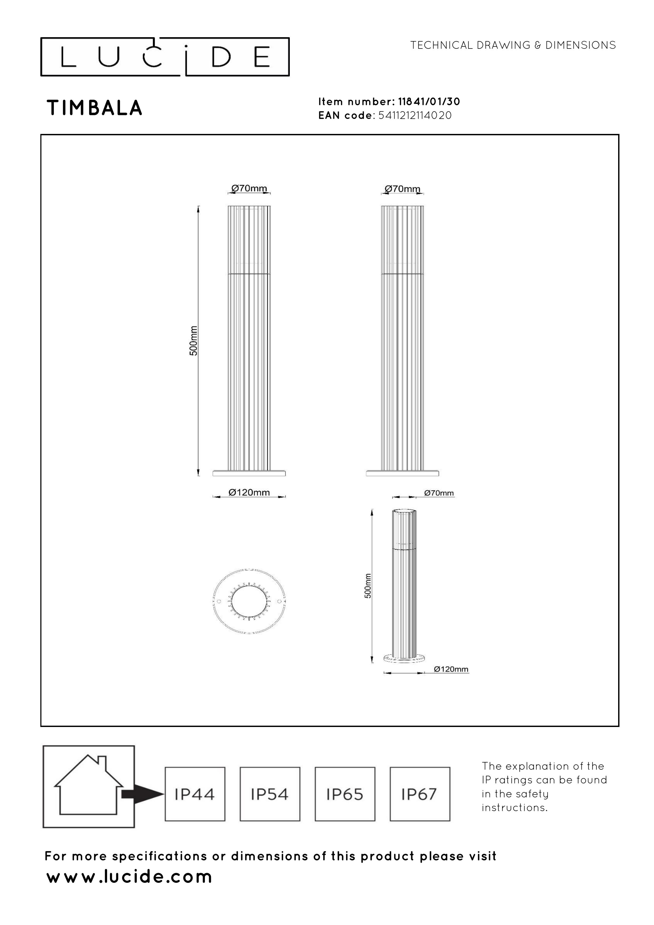 Schaffe eine stilvolle und sichere Außenumgebung mit der TIMBALA Sockelleuchte von Lucide. Diese moderne Außenleuchte auf Sockel besteht aus mattschwarzem Aluminium mit einem opalen Diffusor und sorgt für angenehmes, diffuses Licht rundum. Dank der GU10-Fassung (1x40W, dimmbar über externen Dimmer) ist die Leuchte für energieeffiziente LED-Leuchtmittel geeignet. Die IP44-Schutzklasse macht sie regen- und feuchtigkeitsbeständig , ideal für Wege, Einfahrten oder Beete. Mit 7 cm Breite, 7 cm Länge und 50 cm Höhe ist diese Sockelleuchte kompakt und leistungsstark zugleich. Verleihe deinem Garten Atmosphäre und Struktur mit der klaren TIMBALA Sockelbeleuchtung!