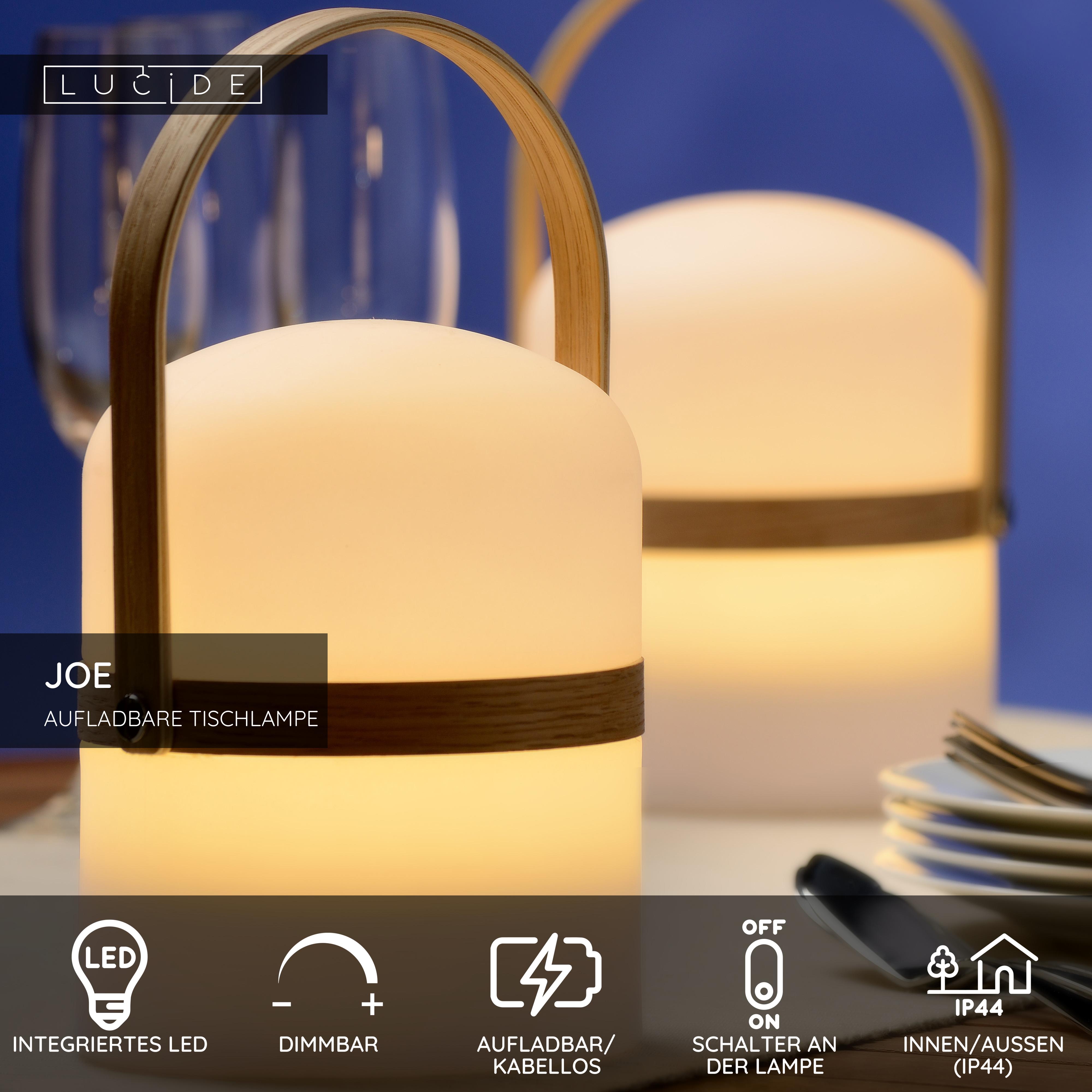 Lucide JOE - wiederaufladbare Tischlampe Innen/Außen - Akku/Batterie - Ø 14,5 cm - LED Dim. - 1x3W 3000K - IP44 - Weiß