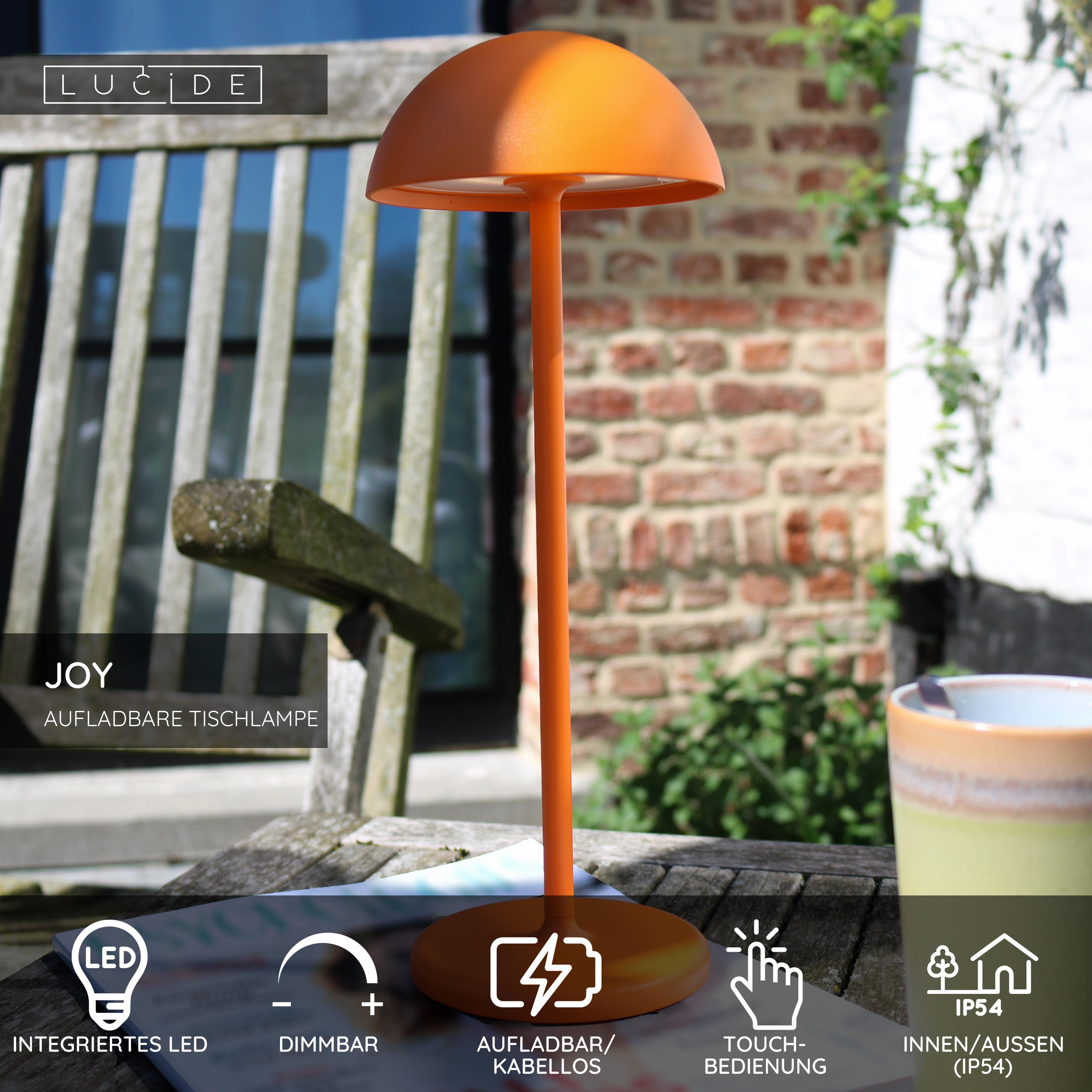 Lucide JOY - wiederaufladbare Tischlampe Innen/Außen - Akku/Batterie - Ø 12 cm - LED Dim. - 1x1,5W 3000K - IP54 - Orange
