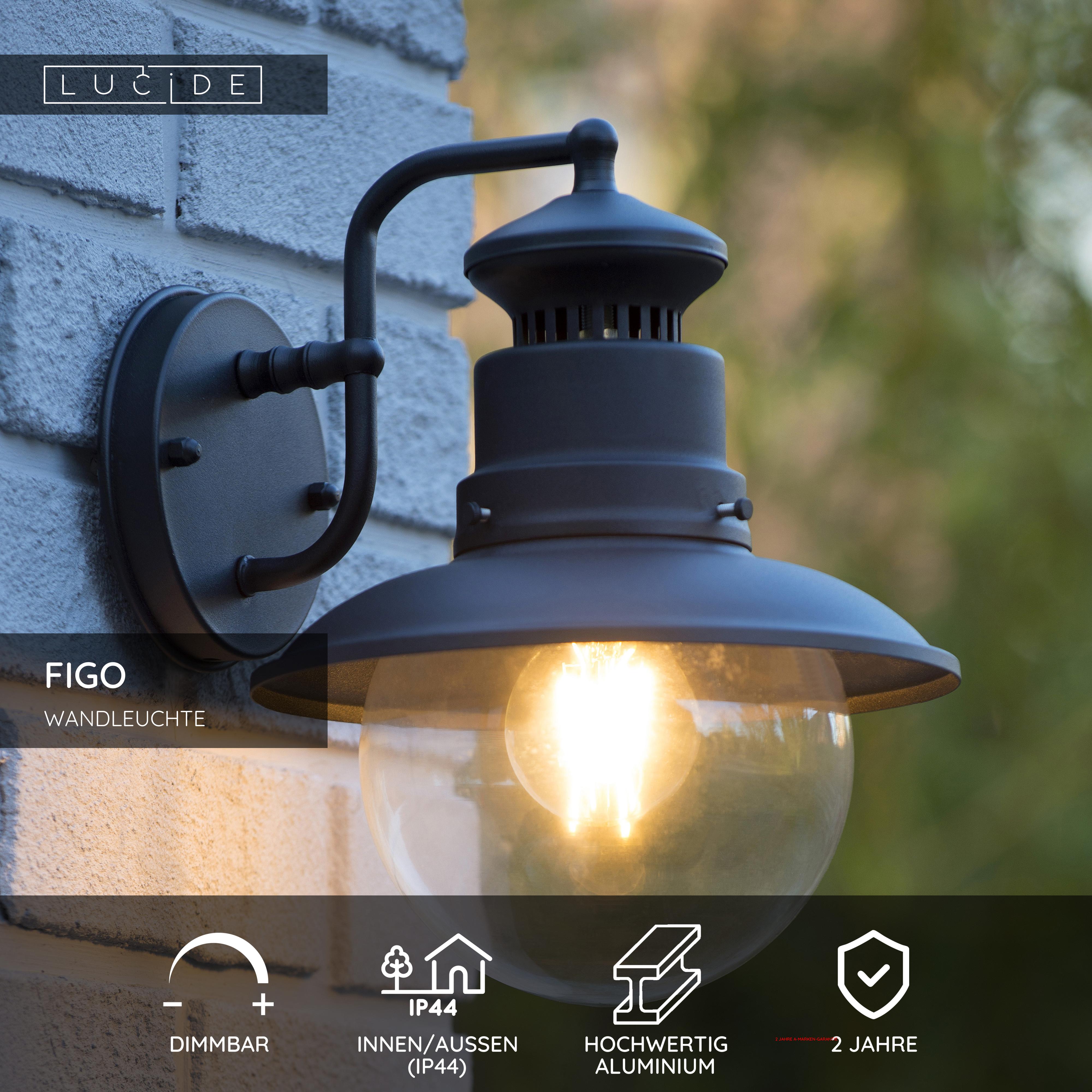 Lucide FIGO - Wandleuchte Innen/Außen - Ø 21,5 cm - 1xE27 - IP44 - Schwarz