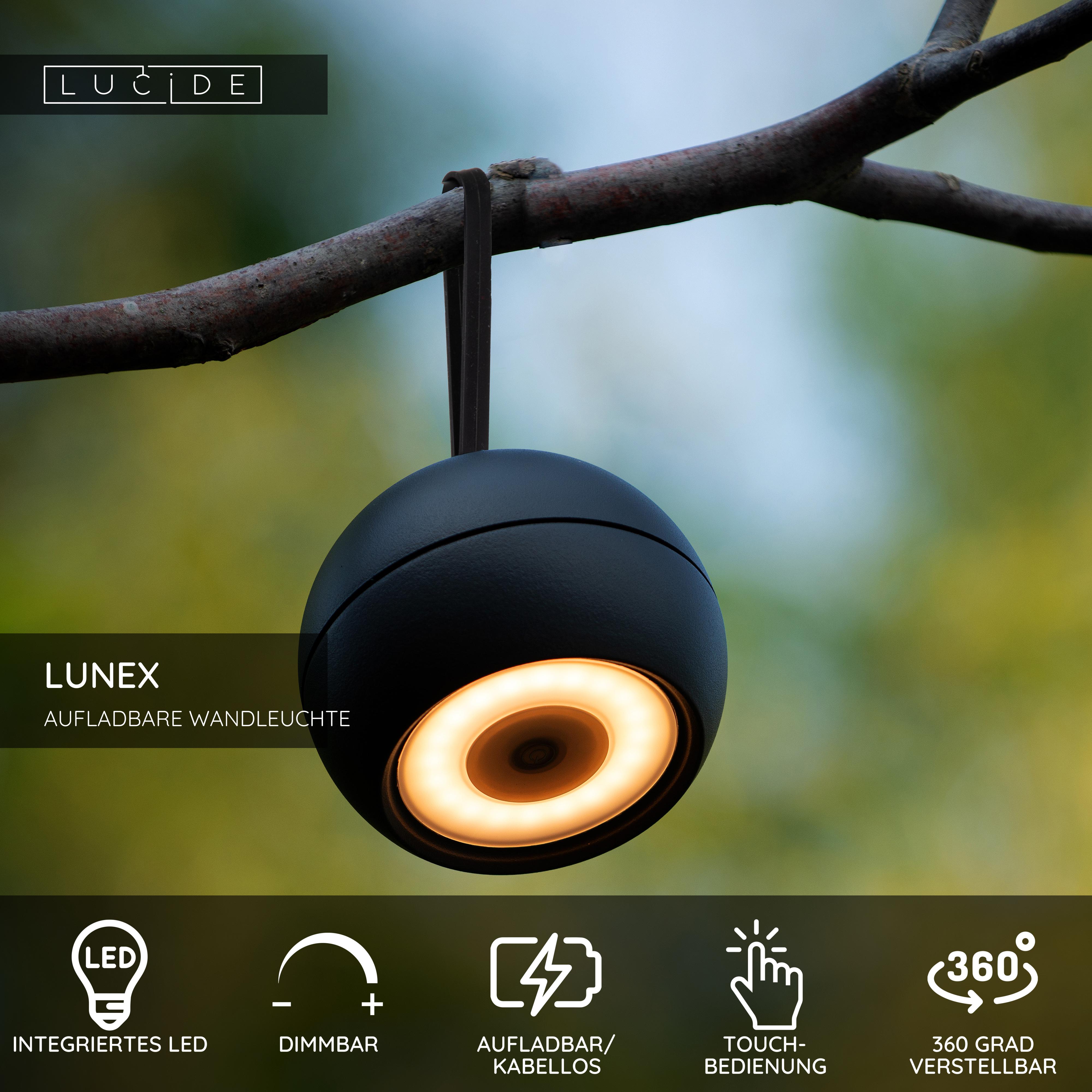 Lucide LUNEX - wiederaufladbare Wandleuchte Innen/Außen - Akku/Batterie - LED Dim. - 1x2W 3000K - IP54 - Magnetisch - Schwarz