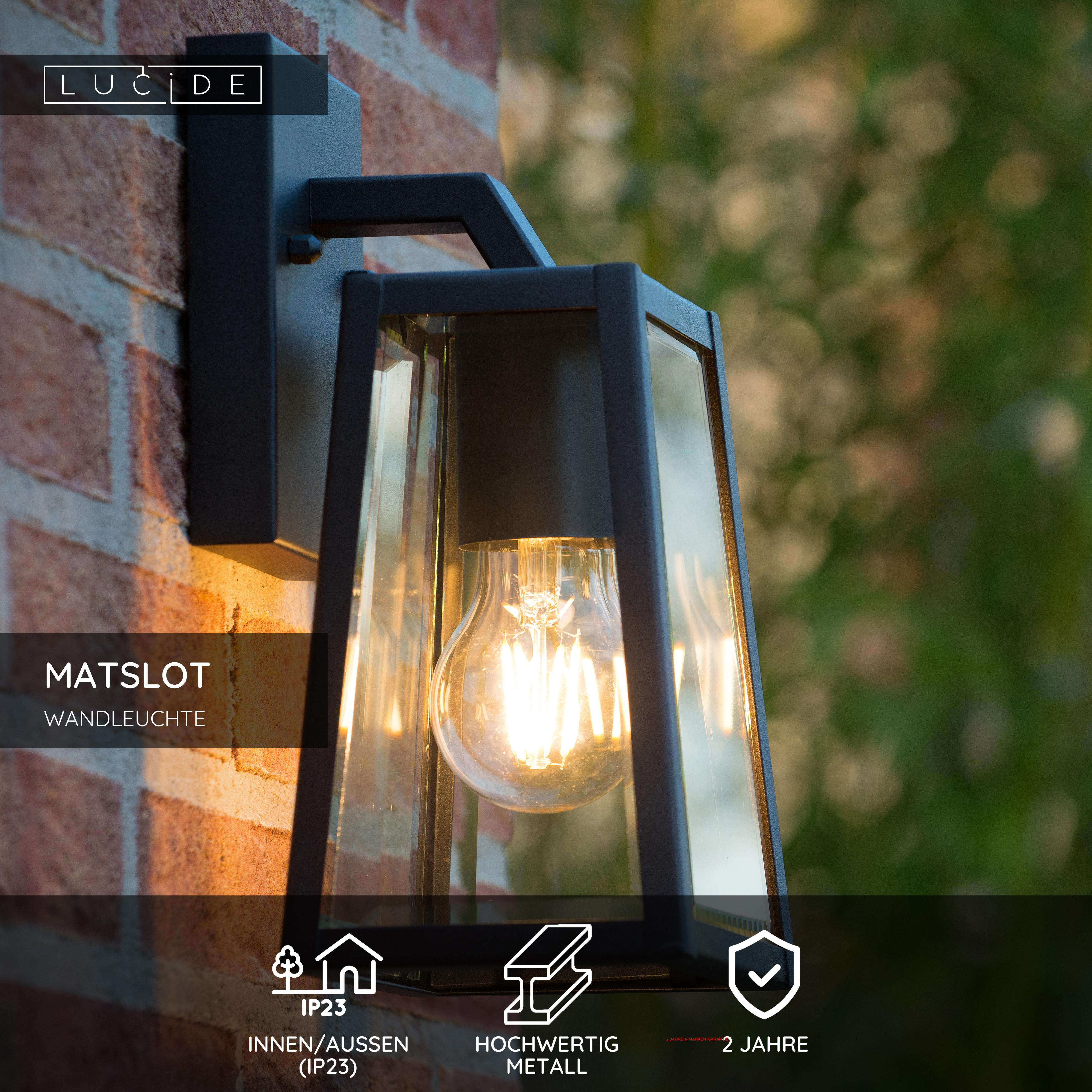 Lucide MATSLOT - Wandleuchte Innen/Außen - 1xE27 - IP23 - Schwarz