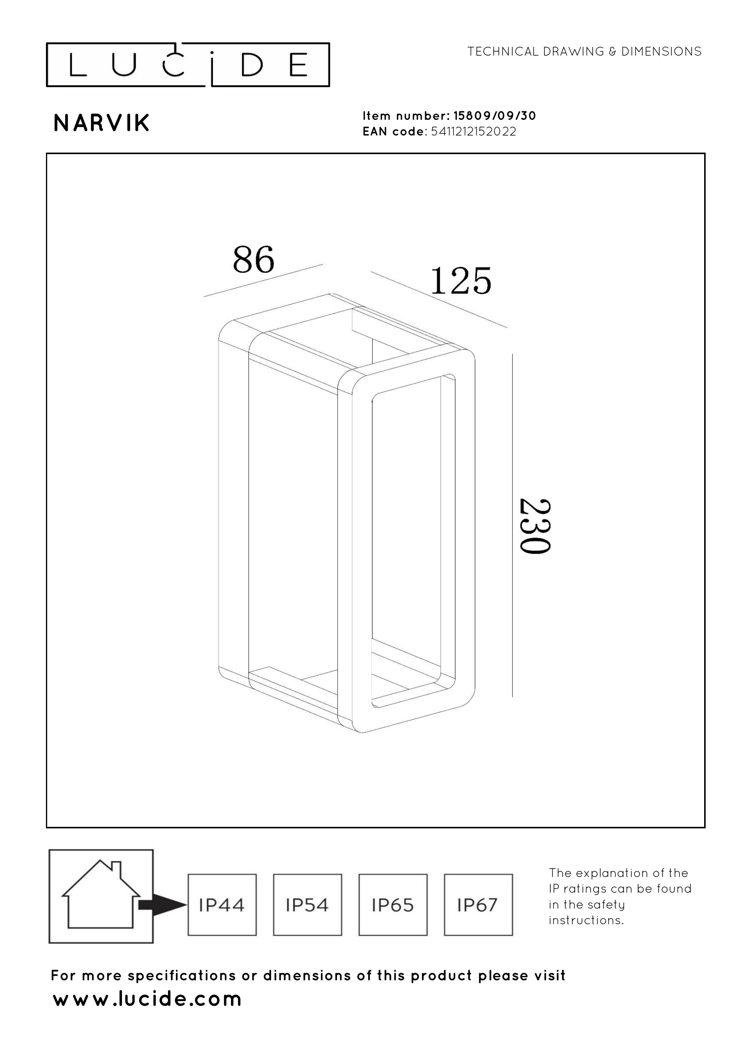 Lucide NARVIK - Wandleuchte Innen/Außen - LED - 1x9,2W 3000K - IP65 - Schwarz