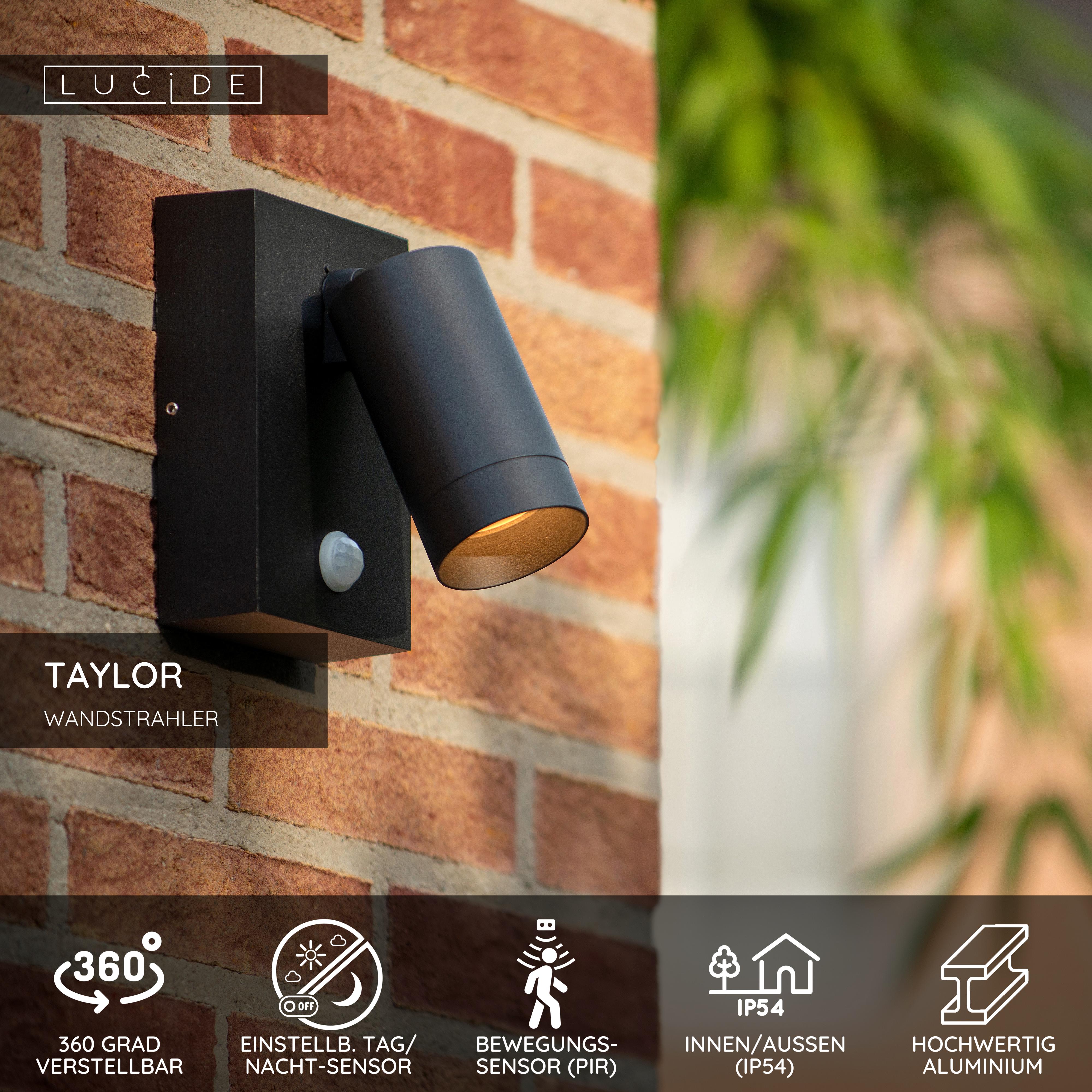 Lucide TAYLOR - Wandstrahler / Wandleuchte Innen/Außen - 1xGU10 - IP54 - Bewegungssensor - Schwarz