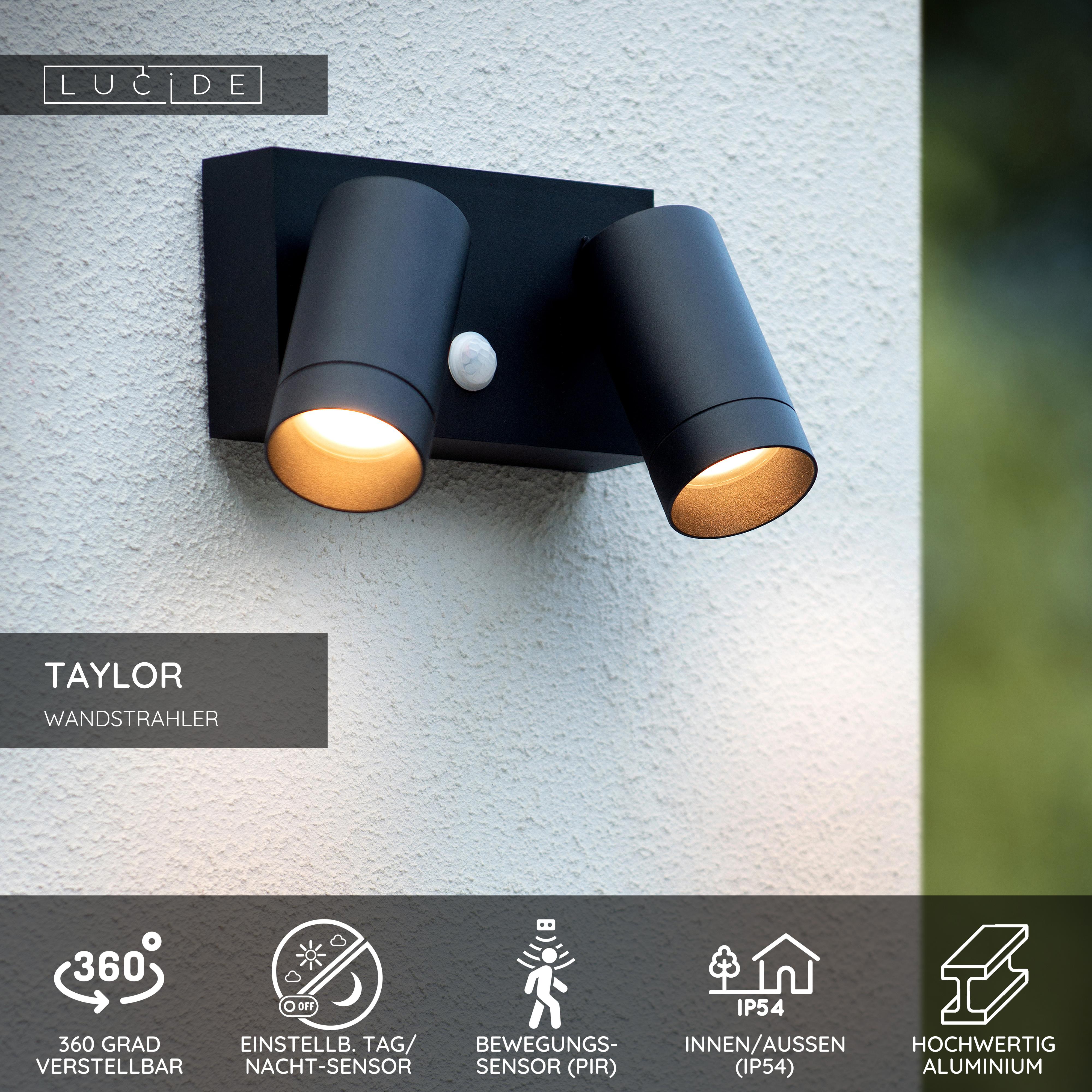Lucide TAYLOR - Wandstrahler / Wandleuchte Innen/Außen - 2xGU10 - IP54 - Bewegungssensor - Schwarz