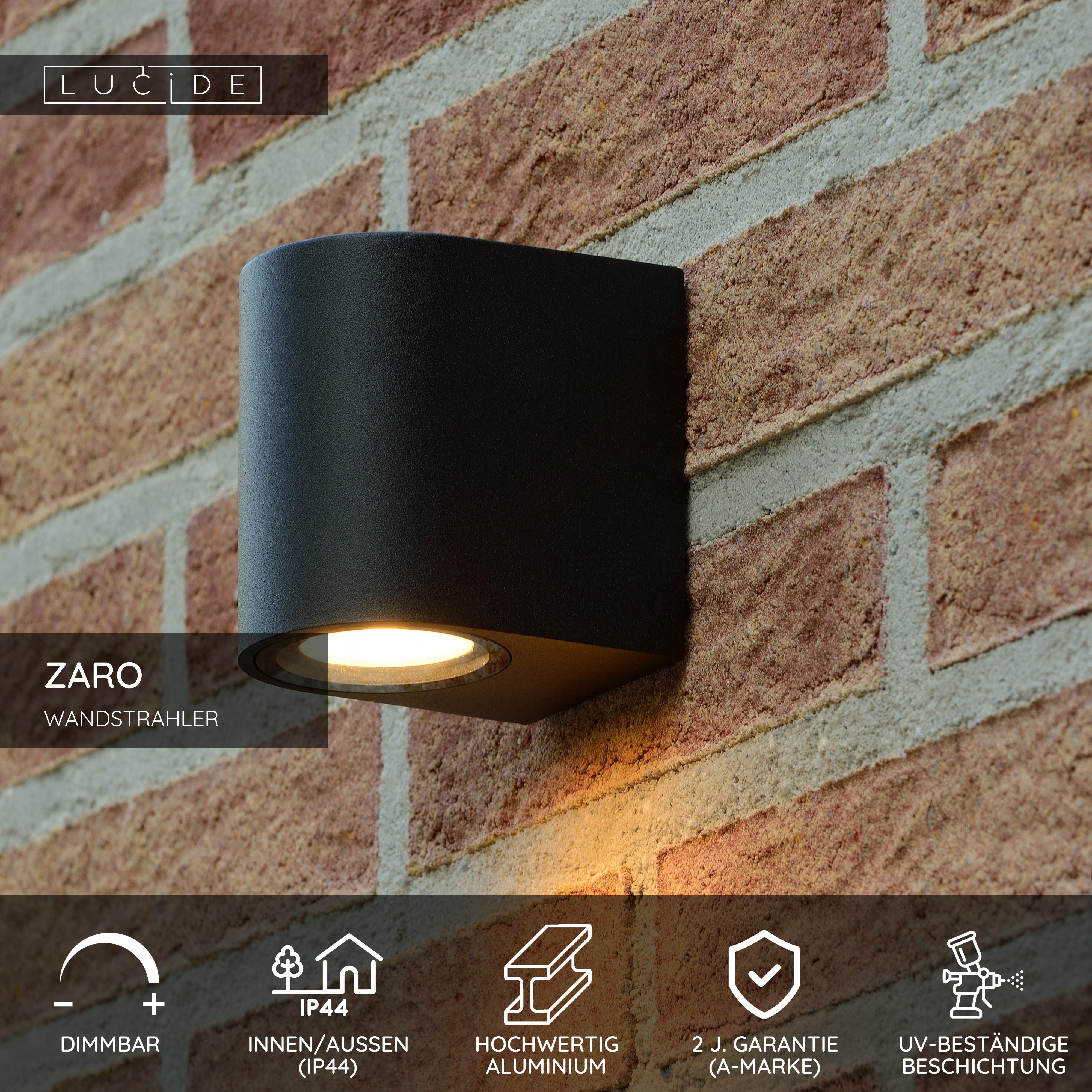 Lucide ZARO - Wandstrahler / Wandleuchte Innen/Außen - 1xGU10 - IP44 - Schwarz
