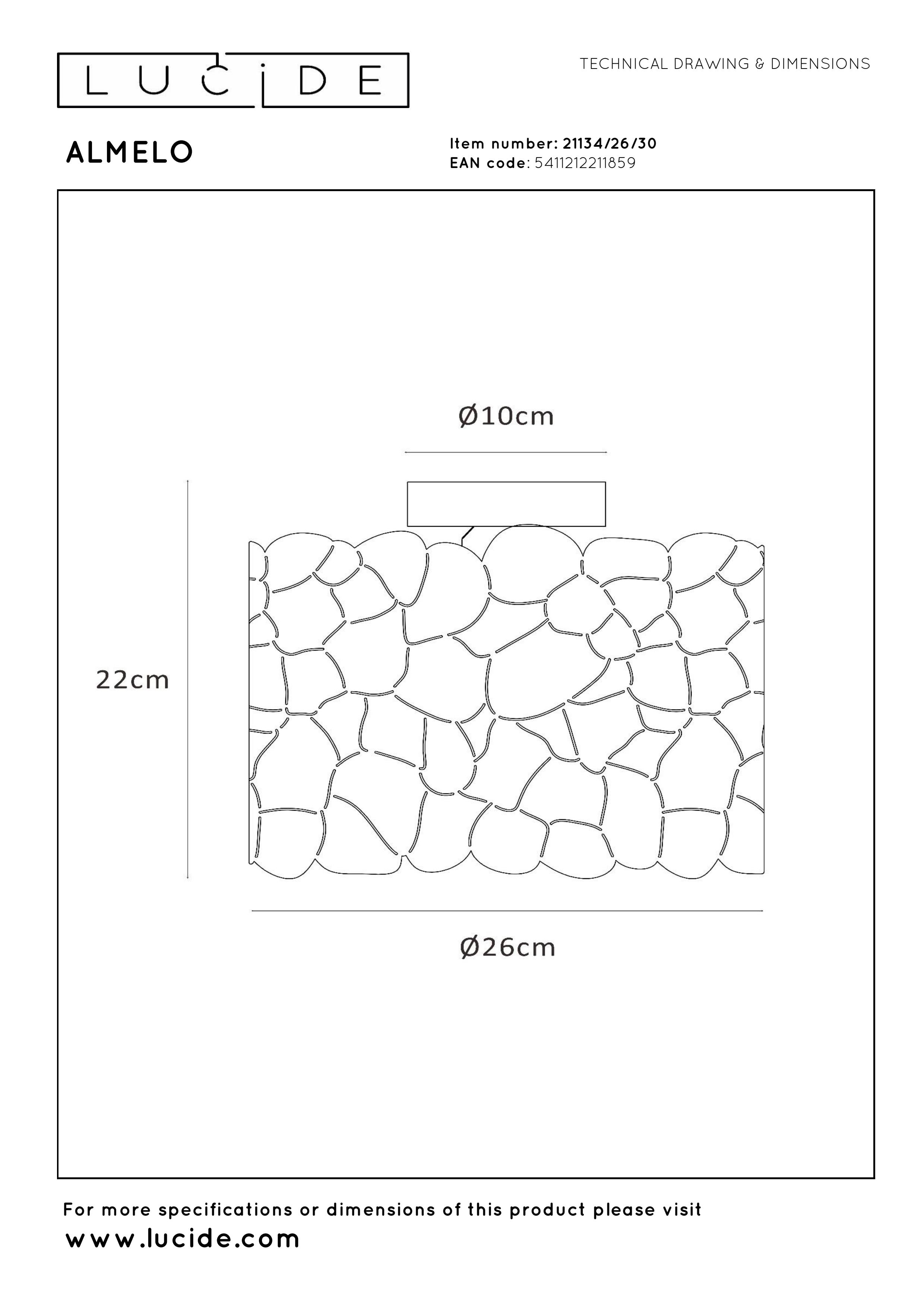 Mit Almelo bringen Sie etwas Mystisches in Ihr Zuhause. Denn diese Deckenleuchte hat einen originellen Lampenschirm mit Giraffenmotiv. Almelo erzeugt in jedem Raum einen warmen Lichteffekt dank ihrer feinen offenen Linienstruktur und der goldfarbenen Innenseite. Möchten Sie mit dieser Deckenleuchte einen verspielten Akzent in Ihrem Esszimmer oder Ihrer Sitzecke setzen? Oder bevorzugen Sie einen Platz in der Diele? Die Lichtintensität können Sie übrigens ganz einfach selbst bestimmen, indem Sie Almelo an einen externen Dimmer anschließen. Die Deckenleuchte hat einen Durchmesser von fast 26 Zentimetern und ist 22 Zentimeter hoch.