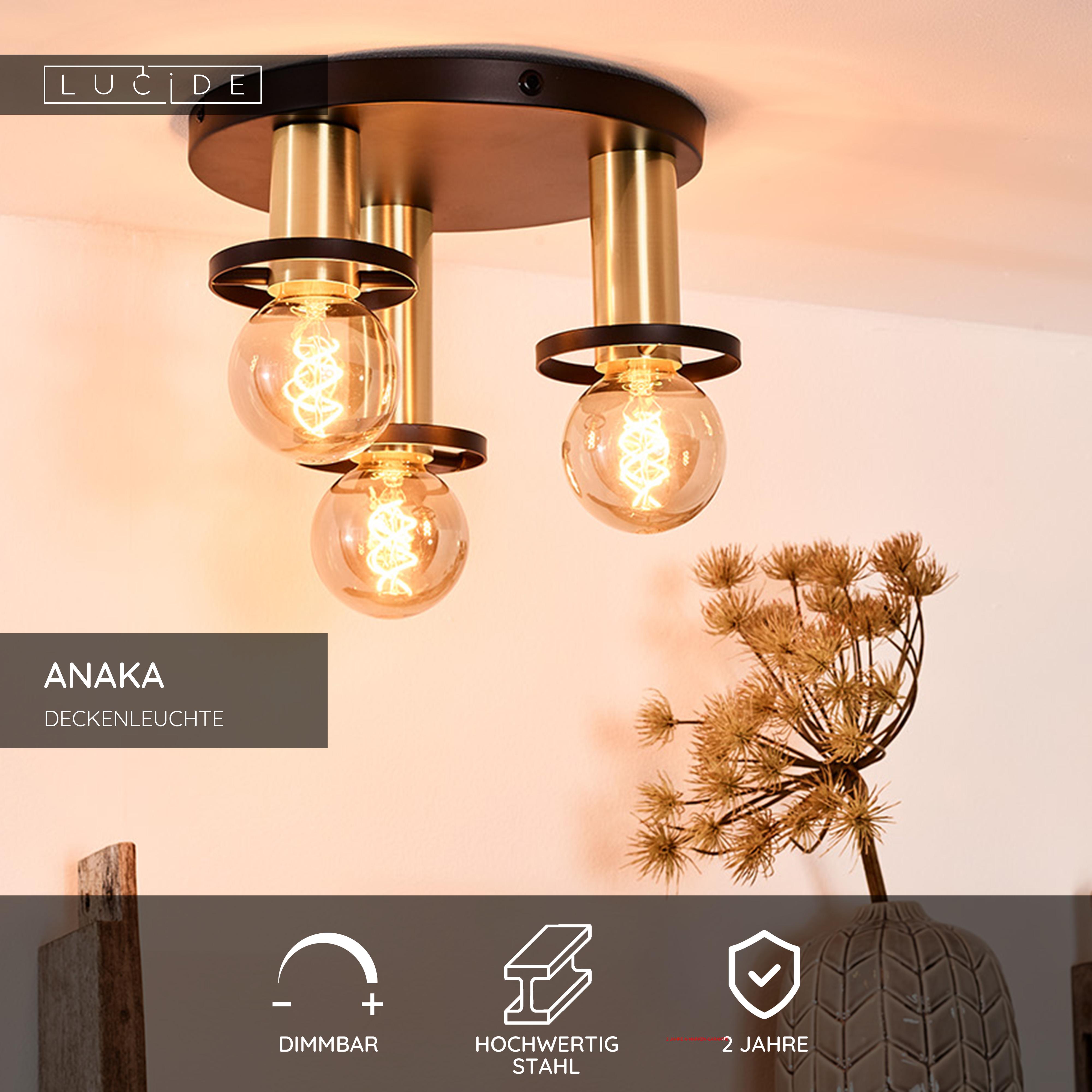 Lucide ANAKA - Deckenleuchte - Ø 30 cm - 3xE27 - Schwarz