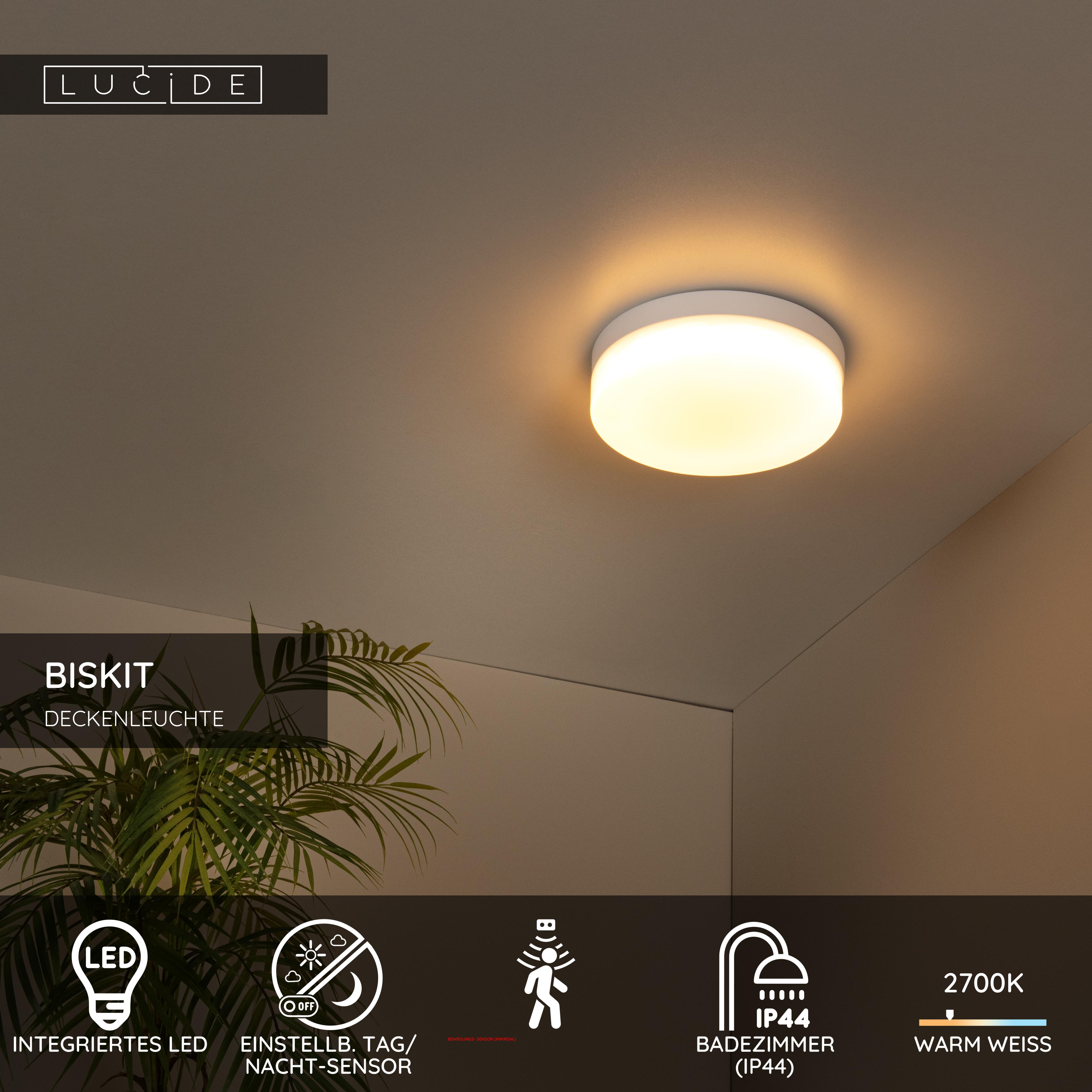 Lucide BISKIT - Deckenleuchte Badezimmer - Ø 23 cm - LED - 1x12W 2700K - IP44 - Bewegungssensor - Weiß