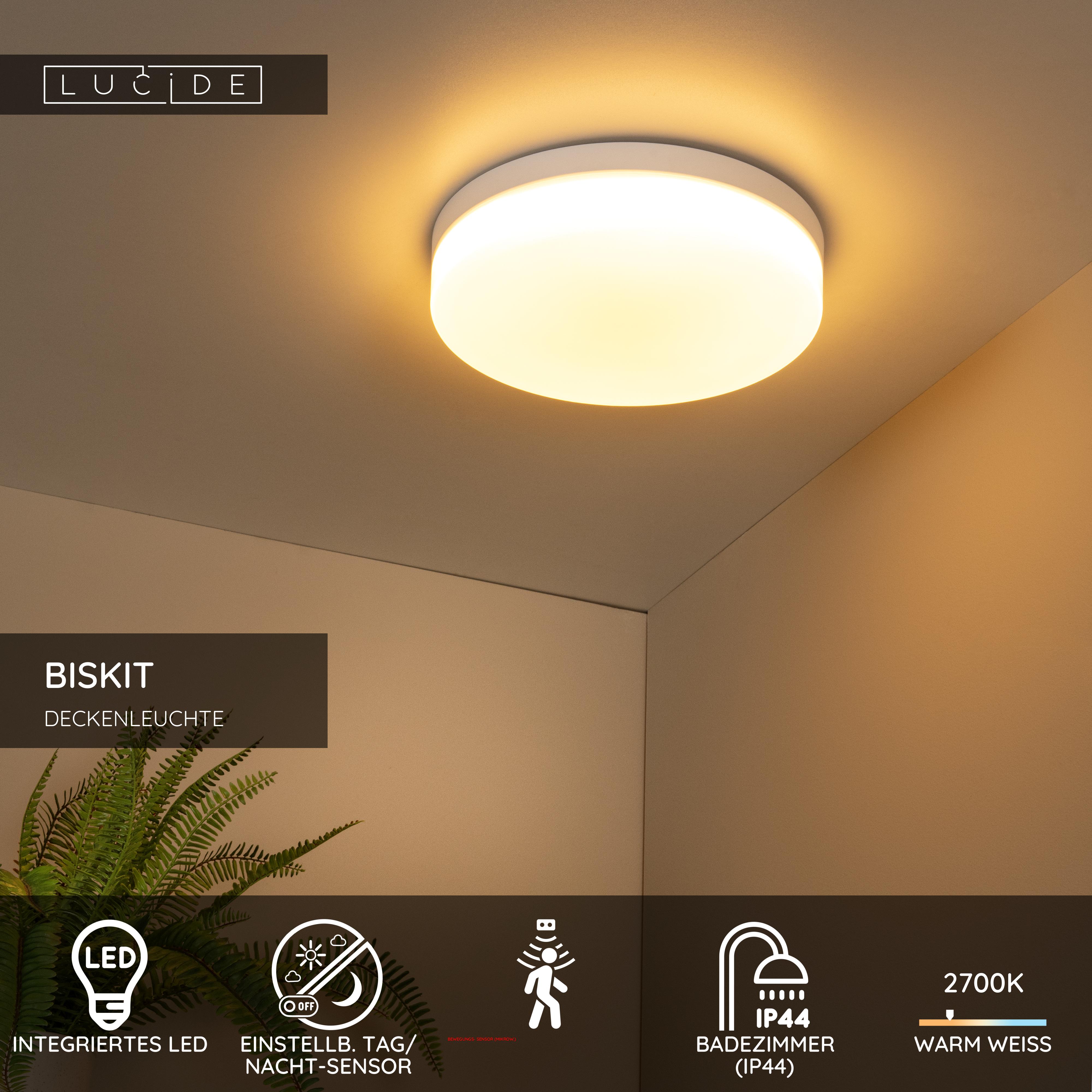 Lucide BISKIT - Deckenleuchte Badezimmer - Ø 34,5 cm - LED - 1x24W 2700K - IP44 - Bewegungssensor - Weiß
