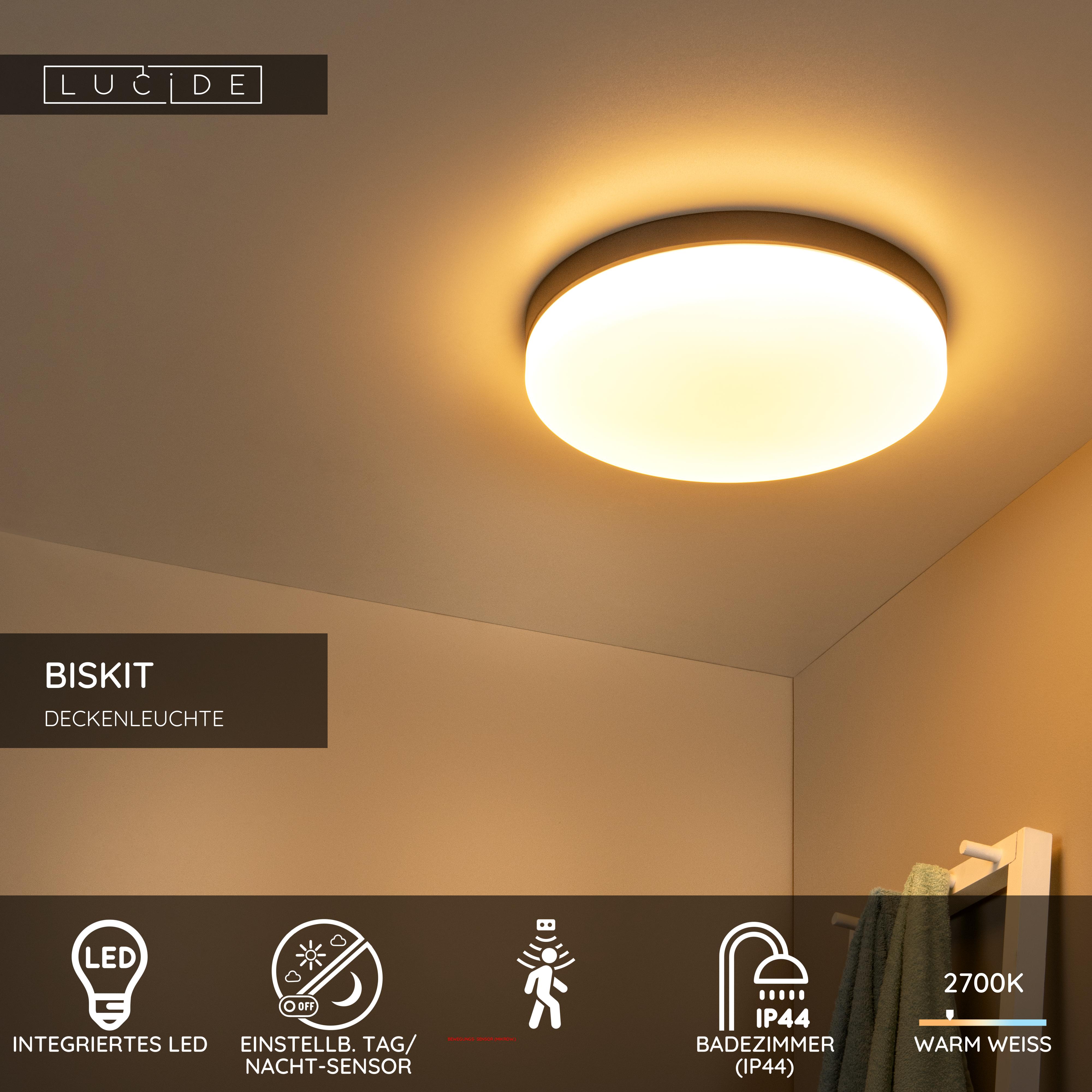 Betreten Sie Ihr Badezimmer und lassen Sie sich von Biskit überraschen. Diese Deckenleuchte mit einem Durchmesser von 40 Zentimetern verfügt über eine integrierte LED-Lampe, die ein warmweißes Licht verbreitet. So verwandelt sich Ihr Badezimmer in eine Oase der Ruhe. Biskit ist aber mehr als nur eine hübsche Lampe. Mit ihrem eingebauten Bewegungssensor begrüßt sie Sie mit ihrem Licht, sobald Sie das Badezimmer betreten. Sobald Sie das Badezimmer wieder verlassen, schaltet sie sich automatisch wieder aus. Das macht Biskit besonders energieeffizient. Die aus hochwertigem Acryl gefertigte Leuchte Biskit, bei deren Design Funktionalität und Stil im Vordergrund stehen, ist die ideale Leuchte für jedes moderne Badezimmer.
