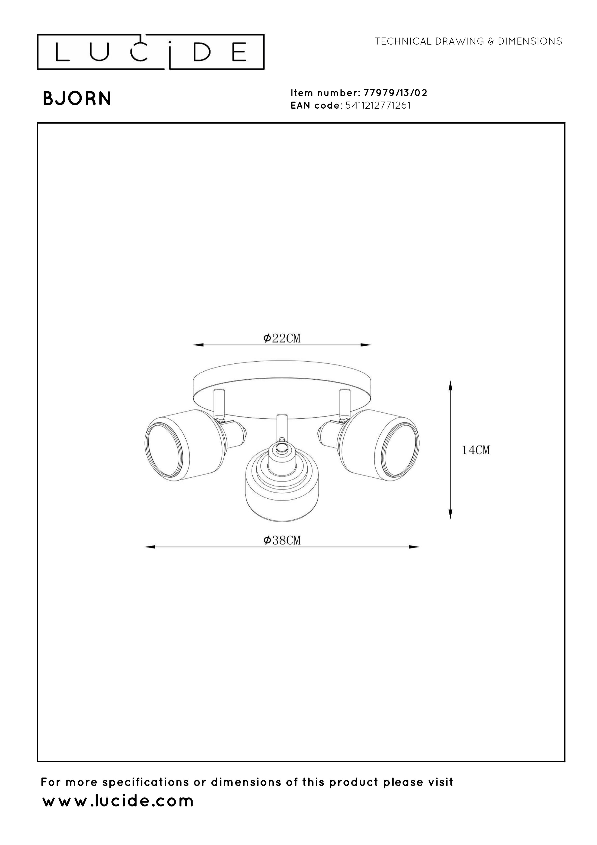 Lucide BJORN - Deckenstrahler - Ø 38 cm - 3xE14 - Mattes Gold / Messing