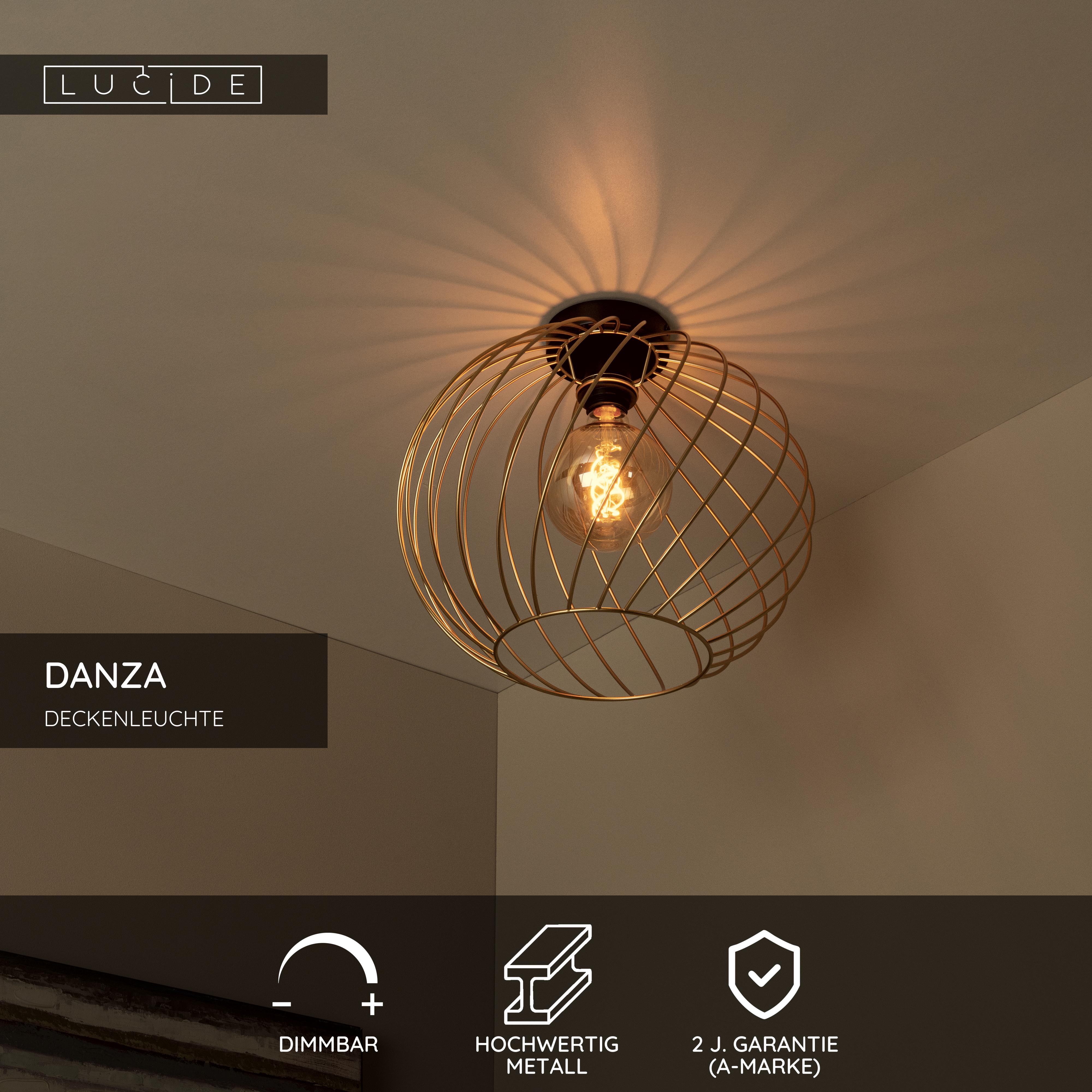 Holen Sie sich diese verspielte Deckenleuchte ins Haus und bringen Sie Schwung in Ihr Interieur. Die kugelförmige Deckenleuchte umschließt die Lichtquelle mit feinen, gedrehten Metalldrähten. Mit ihrer offenen Struktur eignet sich Danza hervorragend für eine schöne Glühlampe als Lichtquelle. Über einen externen Dimmer können Sie außerdem die Lichtintensität nach Lust und Laune einstellen. Danza fühlt sich in jedem Raum wohl: von der gemütlichen Sitzecke über die stimmungsvolle Küche bis hin zum dezenten Schlafzimmer. Diese Deckenbeleuchtung hat einen Durchmesser von 40 Zentimetern und eine Höhe von 35,5 Zentimetern.