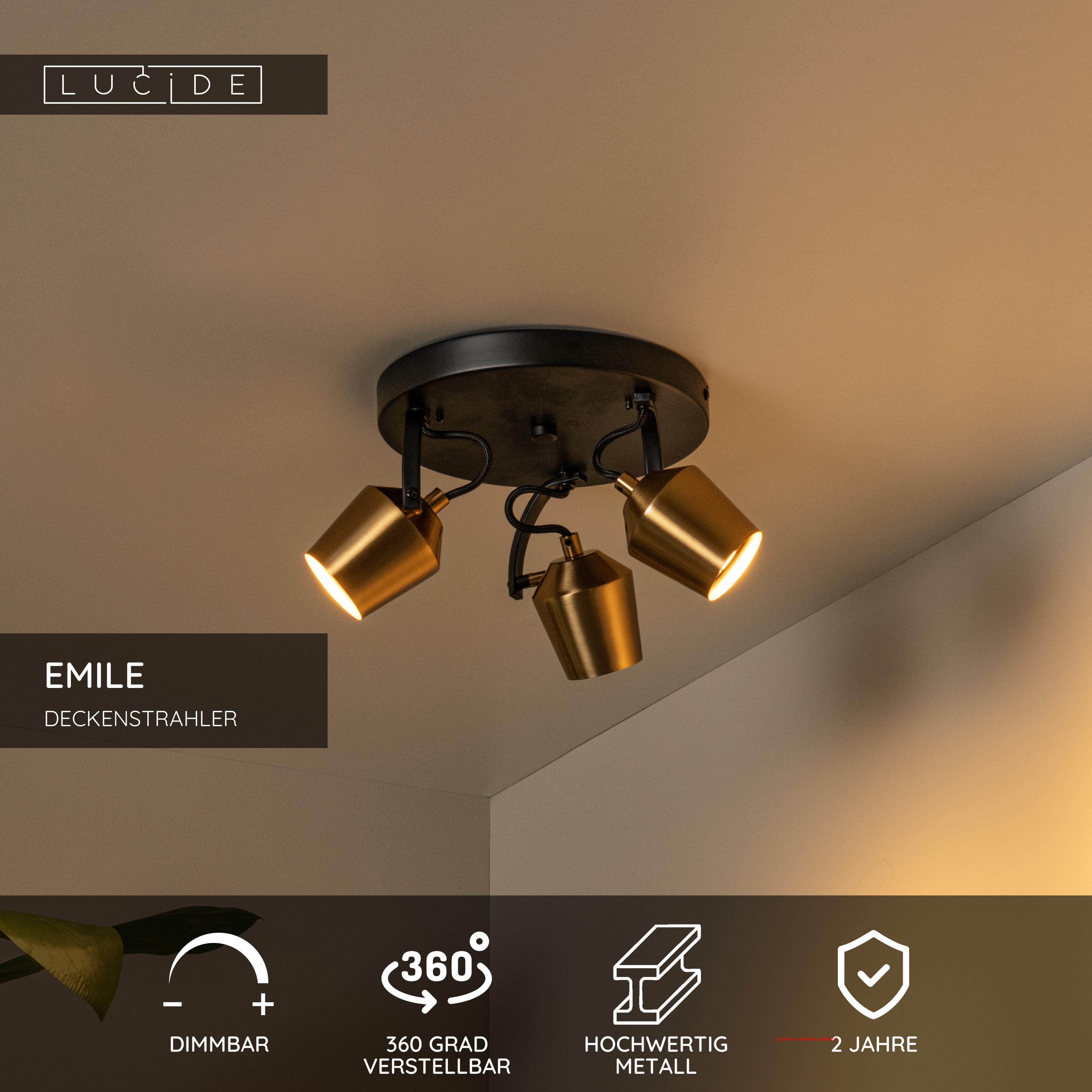 Lucide EMILE - Deckenstrahler - Ø 23 cm - 3xGU10 - Mattes Gold / Messing