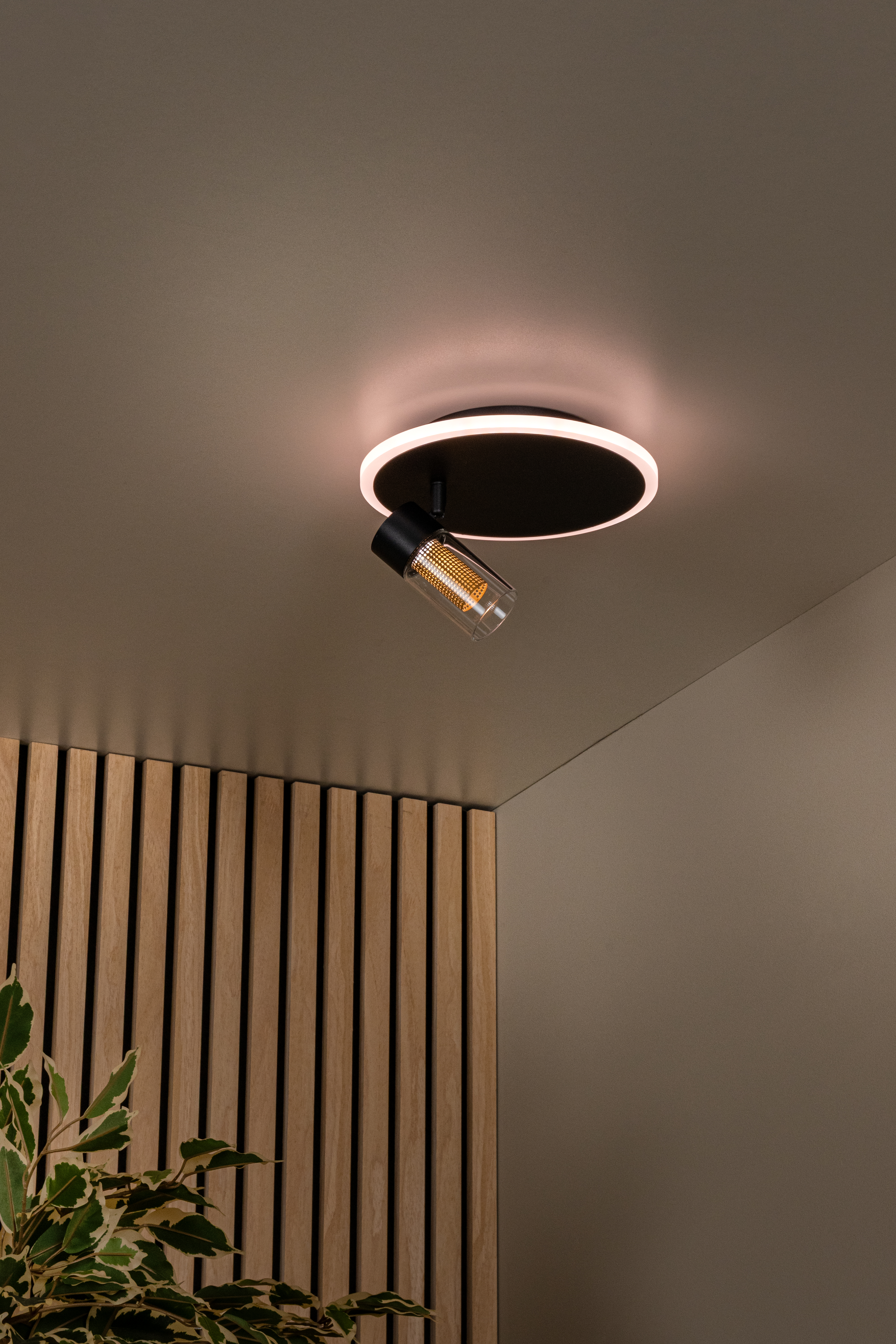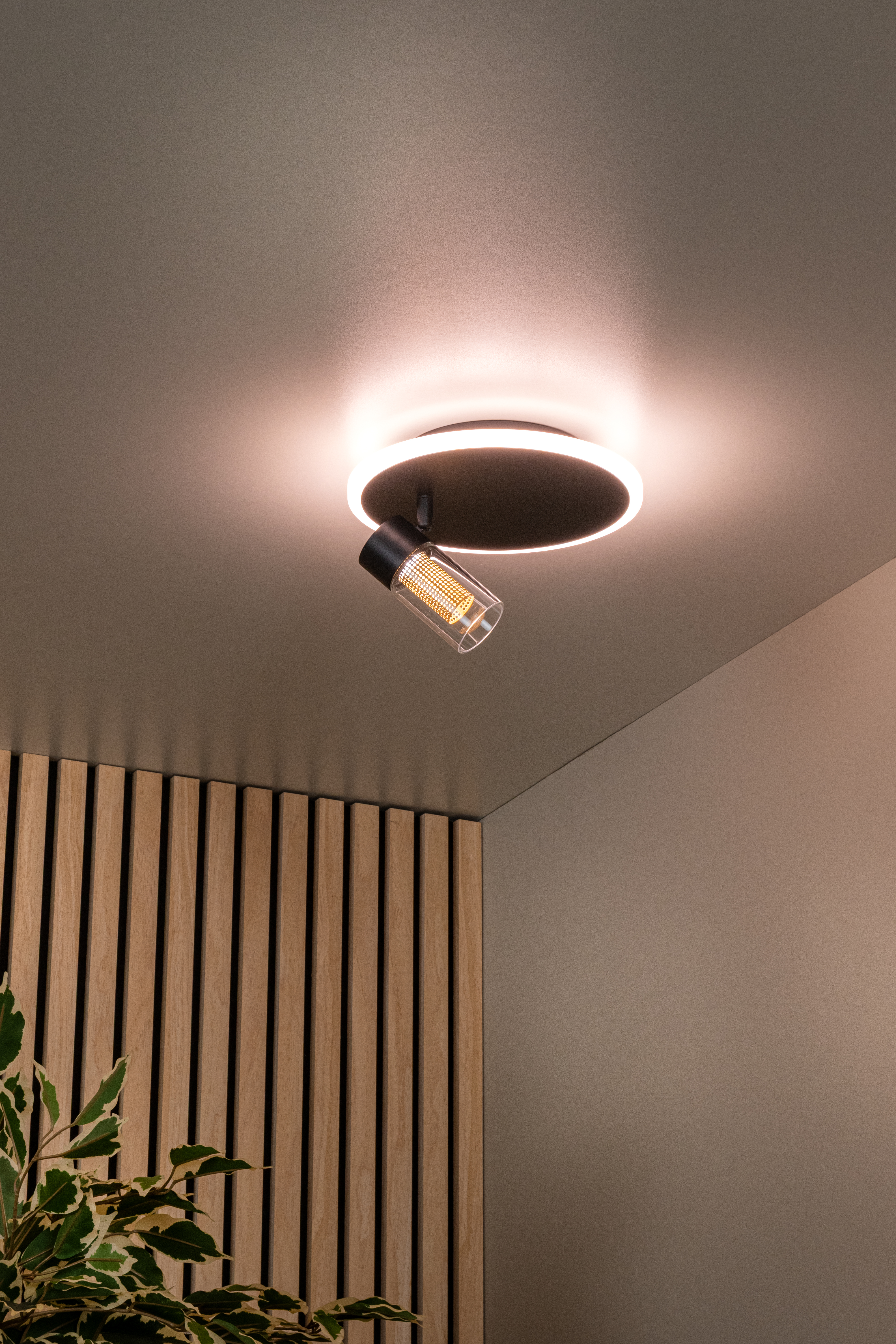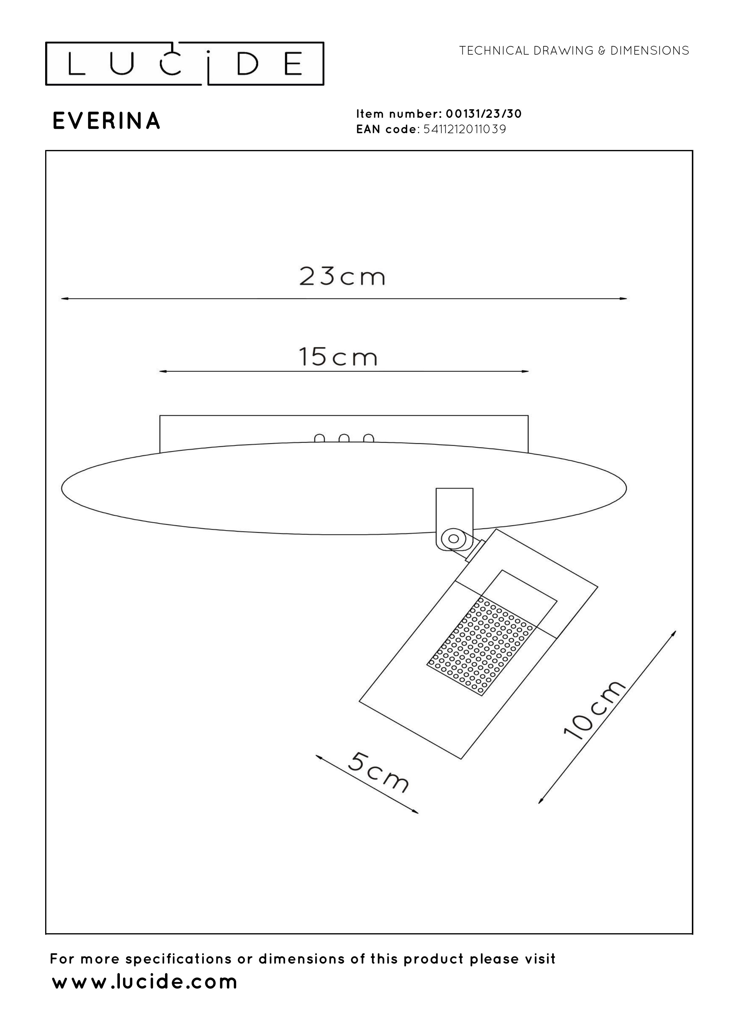 Die Lucide EVERINA Deckenleuchte vereint modernes Design mit höchstem Bedienkomfort. Diese Deckenlampe ist mit einer integrierten 5W LED-Lichtquelle ausgestattet und bietet eine einstellbare Farbtemperatur von extra warmweiß (2200K) bis zu kühlem Tageslicht (6500K) über eine praktische Fernbedienung. Dank des dreh- und schwenkbaren Lampenkopfs lässt sich das Licht genau dorthin richten, wo es benötigt wird , ideal für funktionale sowie stimmungsvolle Beleuchtung. Die Deckenplatte hat einen Durchmesser von 23 cm und eine Höhe von 17,5 cm. Aus schwarz pulverbeschichtetem Eisen gefertigt, passt diese Deckenleuchte mühelos in jedes moderne Interieur.