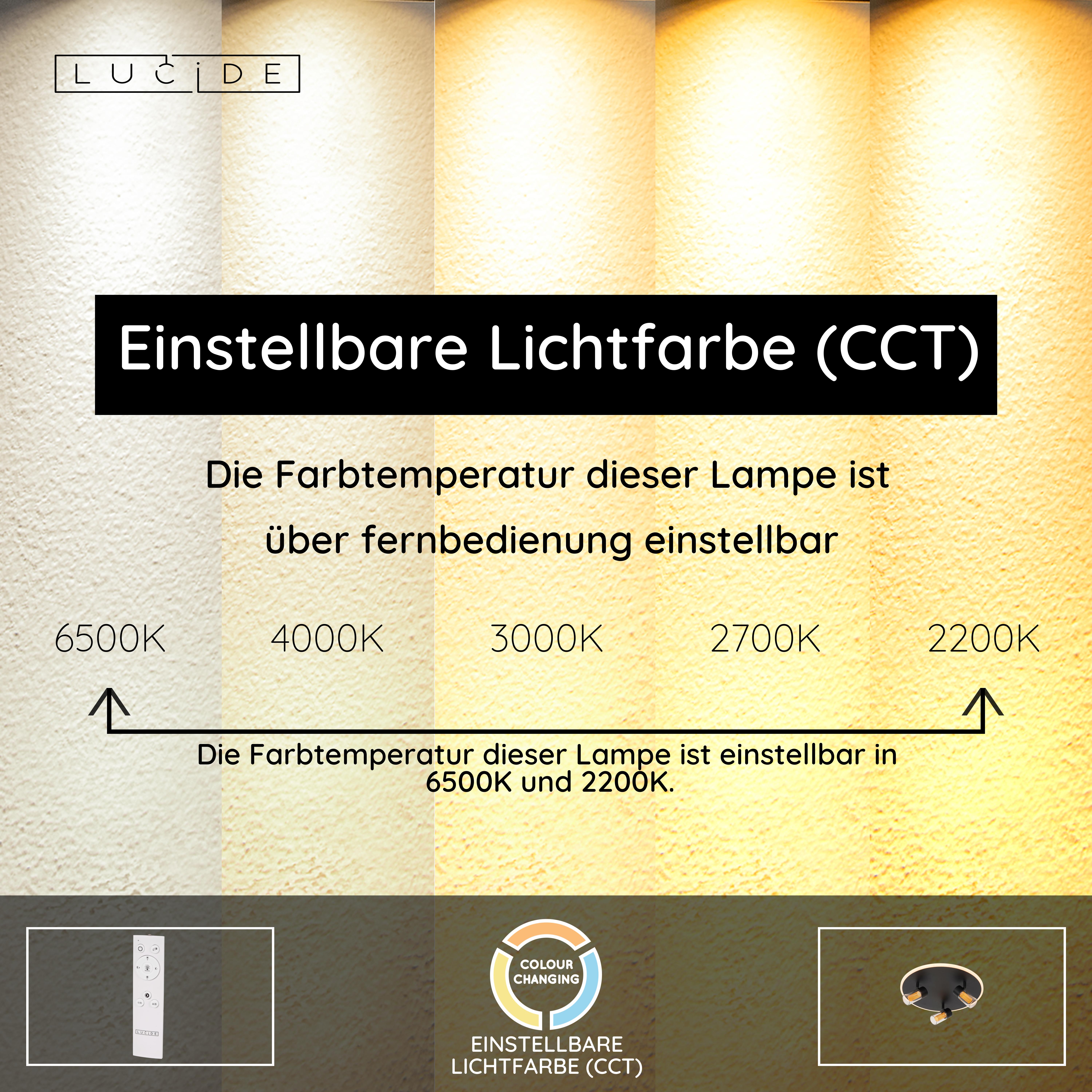 - Farbtemperatur einstellbar über Fernbedienung (2200K-6500K)