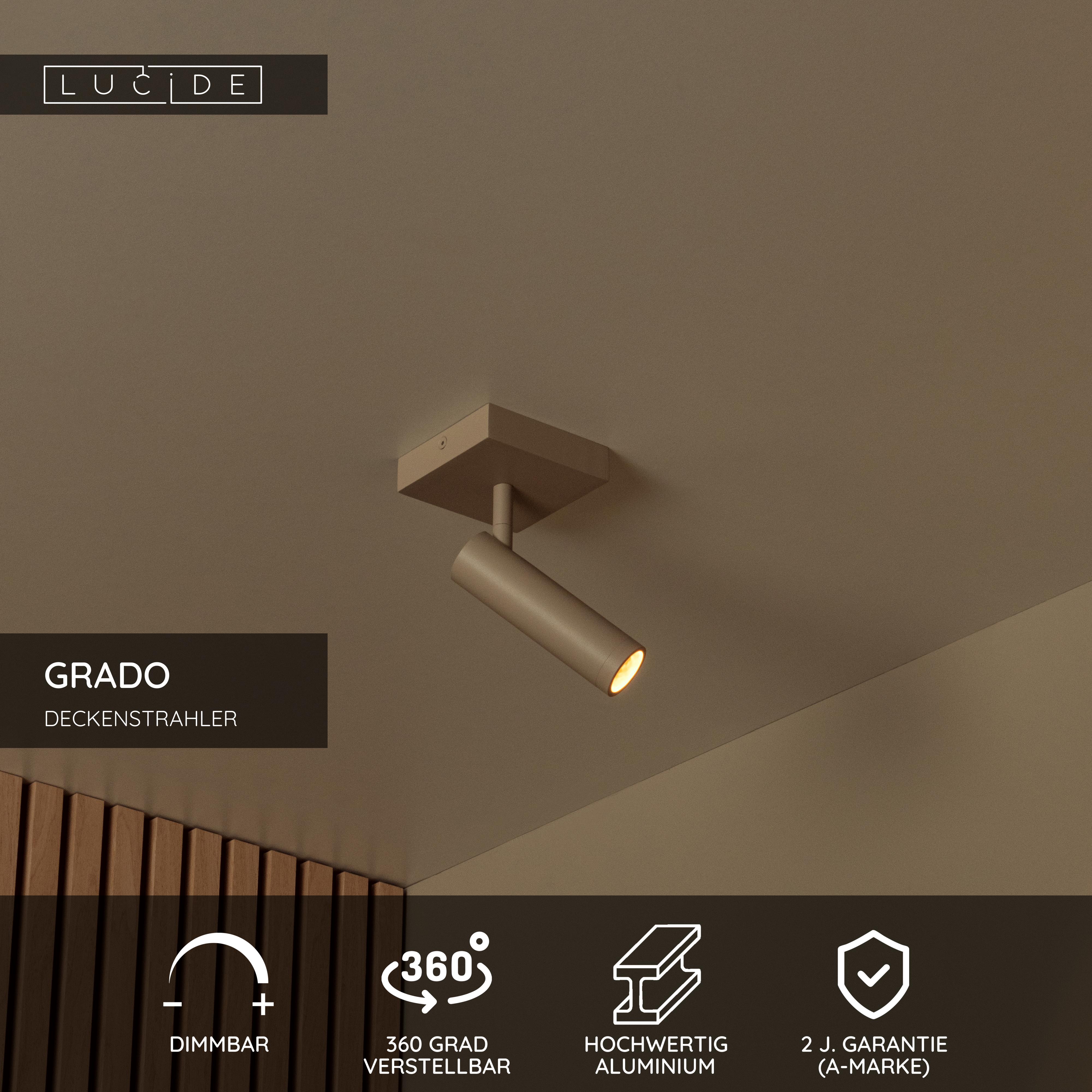 Wem gefällt es nicht, die Freiheit zu haben, zu tun, was er will, auch bei der Beleuchtung? Mit dem Deckenstrahler Grado fügen Sie Ihren Wohnräumen eine schwenk- und neigbare Beleuchtung hinzu. Die warme Lichtfarbe trägt das Übrige dazu bei, gemütliches und funktionales Licht zu kombinieren. Mit der flachen Montageplatte lässt sich Grado einfach an Ort und Stelle aufhängen. Perfekt für das eigene Zuhause oder in Gesellschaft einiger Gleichgesinnter.