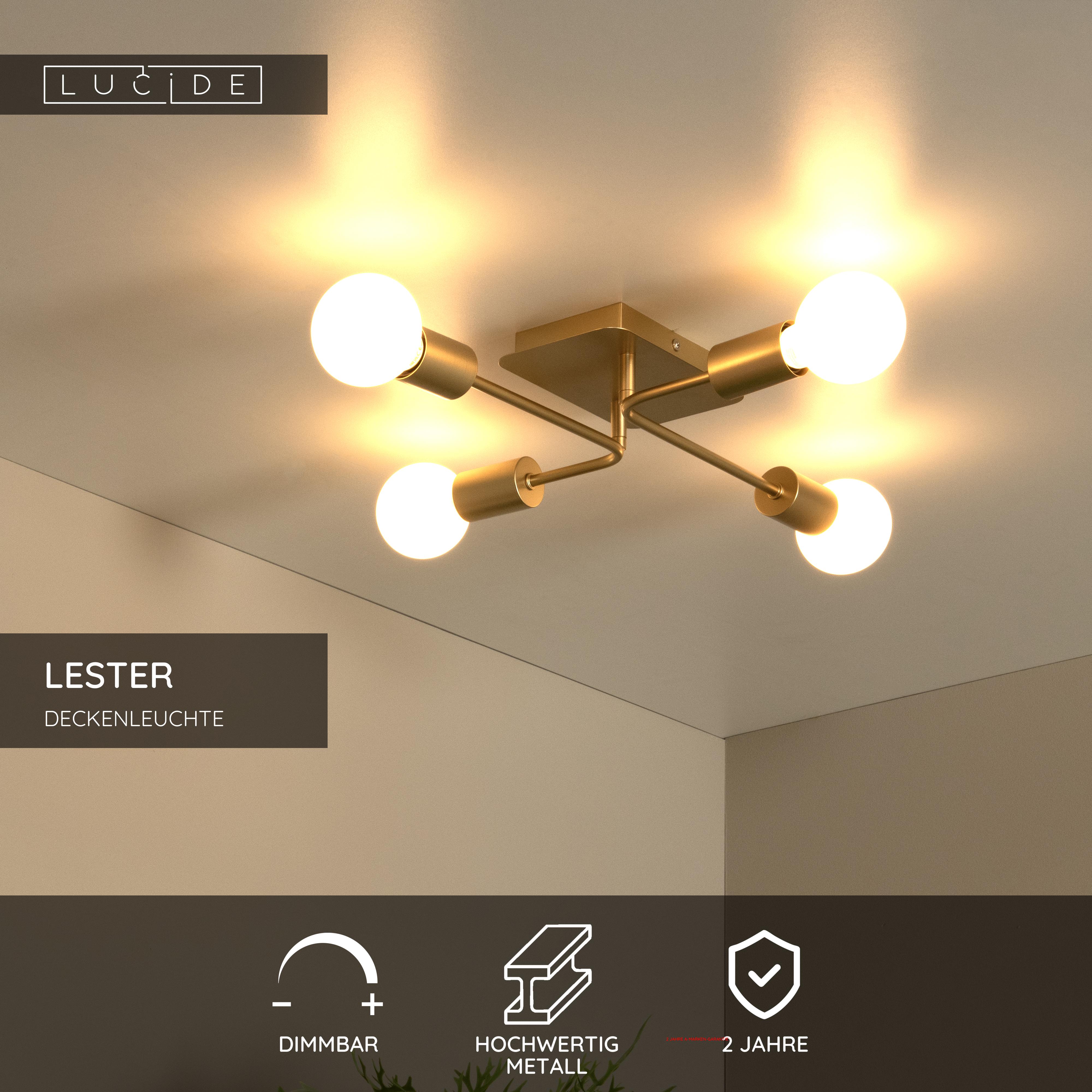 Lucide LESTER - Deckenleuchte - 4xE27 - Mattes Gold / Messing