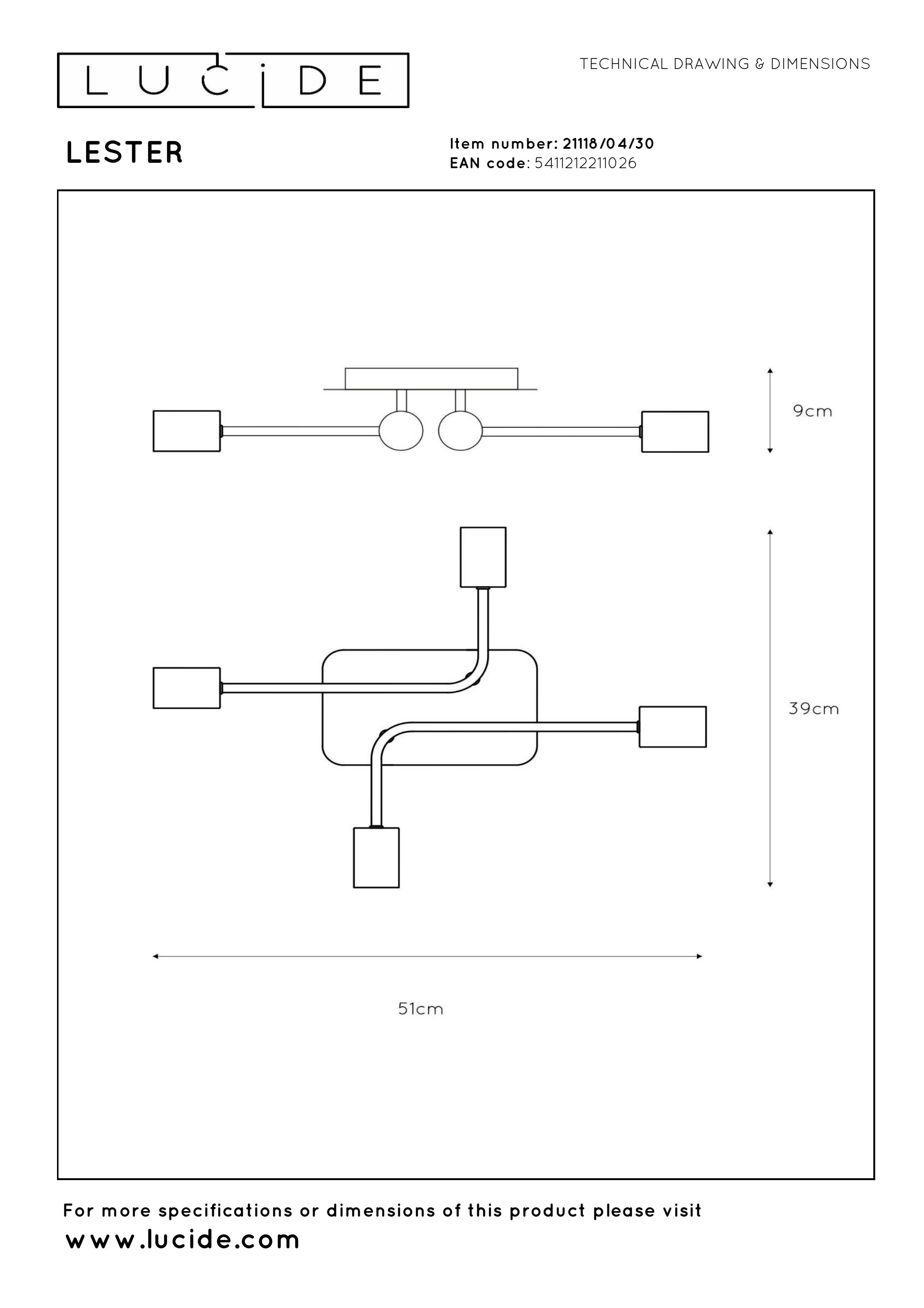 - Energieverbrauch: 4x40W / 230V / Dimmbaar (Lichtquellen nicht enthalten)