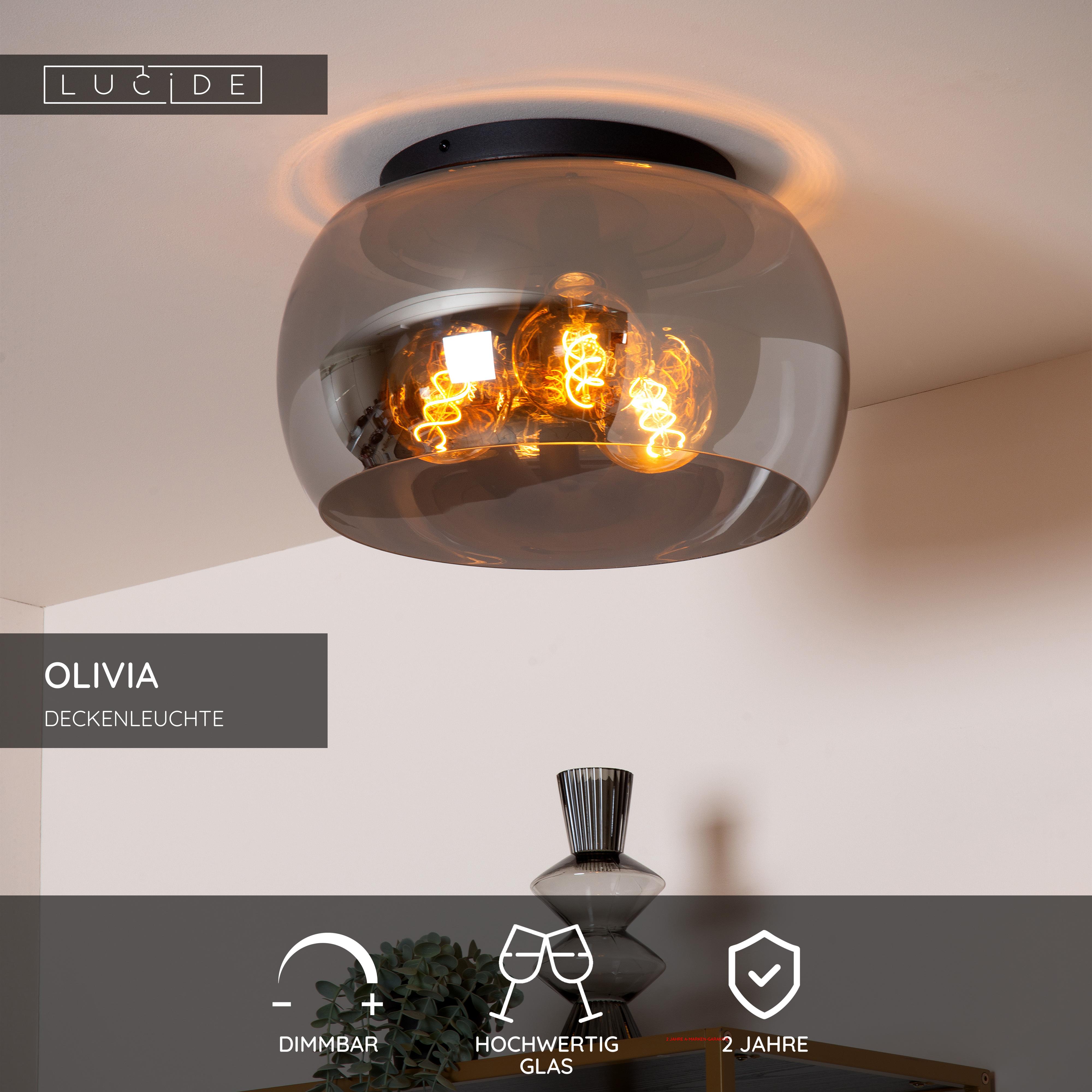 Lucide OLIVIA - Deckenleuchte - Ø 40 cm - 3xE27 - Rauchfarbe Grau