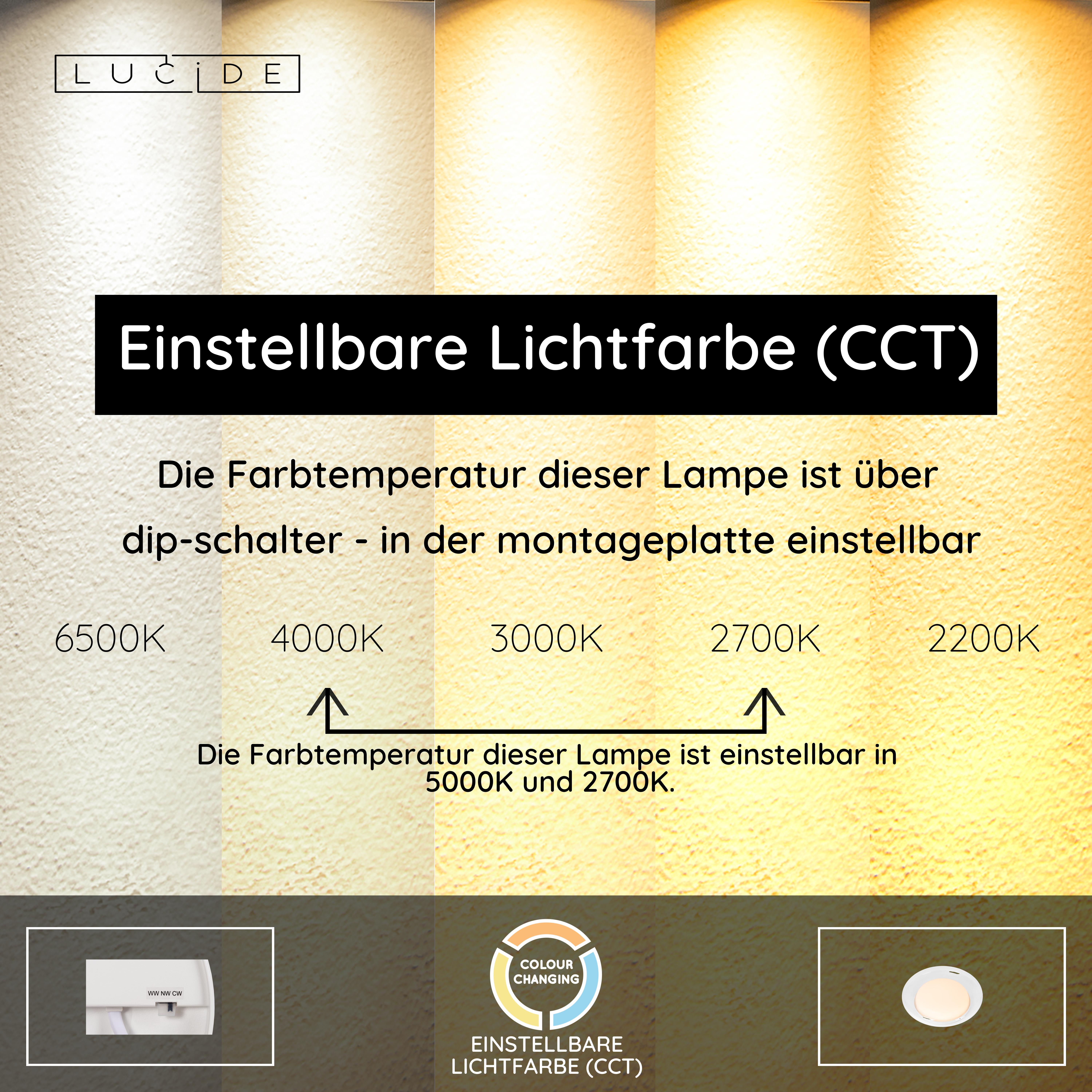 - Farbtemperatur einstellbar über DIP-Schalter in der Montageplatte (2700K-5000K)
