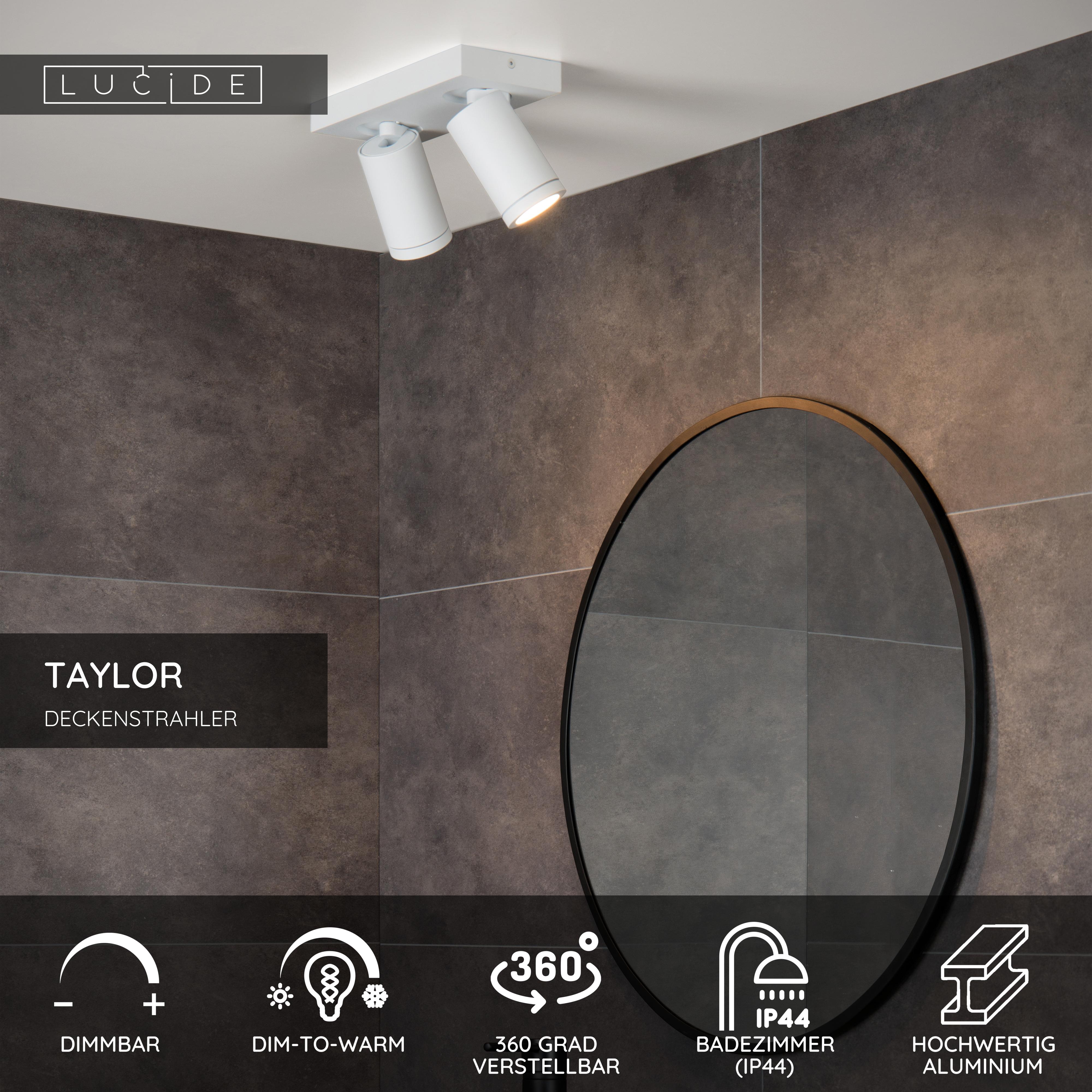 Lucide TAYLOR - Deckenstrahler Badezimmer - LED Dim to warm - GU10 - 2x5W 2200K/3000K - IP44 - Weiß