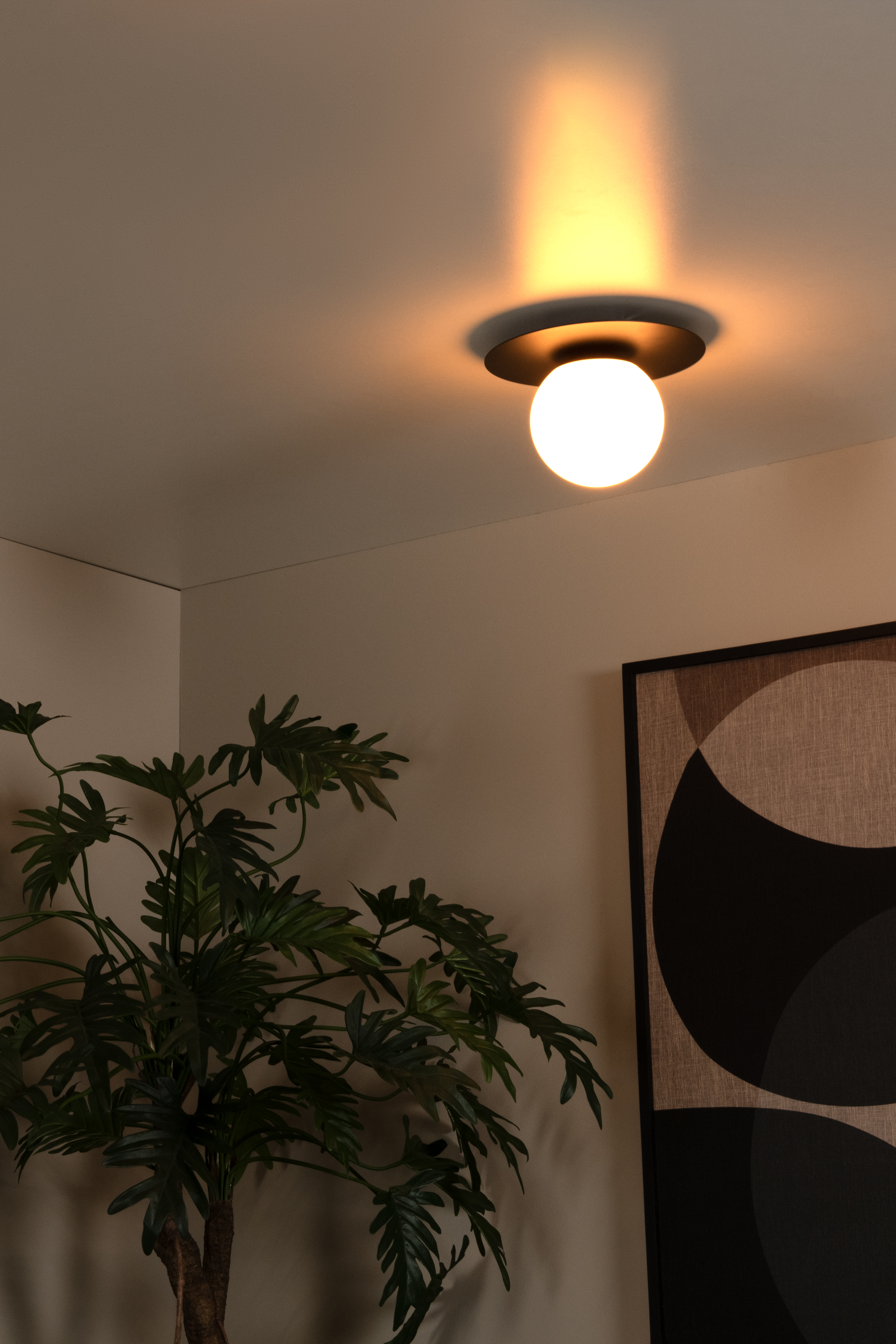 Eine leuchtende Kugel am Himmel - äh, an der Decke. Die Deckenleuchte Tricia ist ein leuchtender Stern am Beleuchtungshimmel. Die Glaskugel mit der Lichtquelle in ihrem Kern ist an einer eleganten Metallscheibe befestigt. Wie die Monde des Saturn reflektiert diese Scheibe das diffuse Licht von Tricia. Die Kombination aus hochwertigem Metall, echtem Glas und einer matten Oberfläche verleiht dieser Deckenleuchte eine moderne Ausstrahlung. Darüber hinaus können Sie die Leuchte ganz einfach an einen Dimmer anschließen. So sind Sie zu jeder Zeit und in jedem Raum der Meister der Atmosphäre.