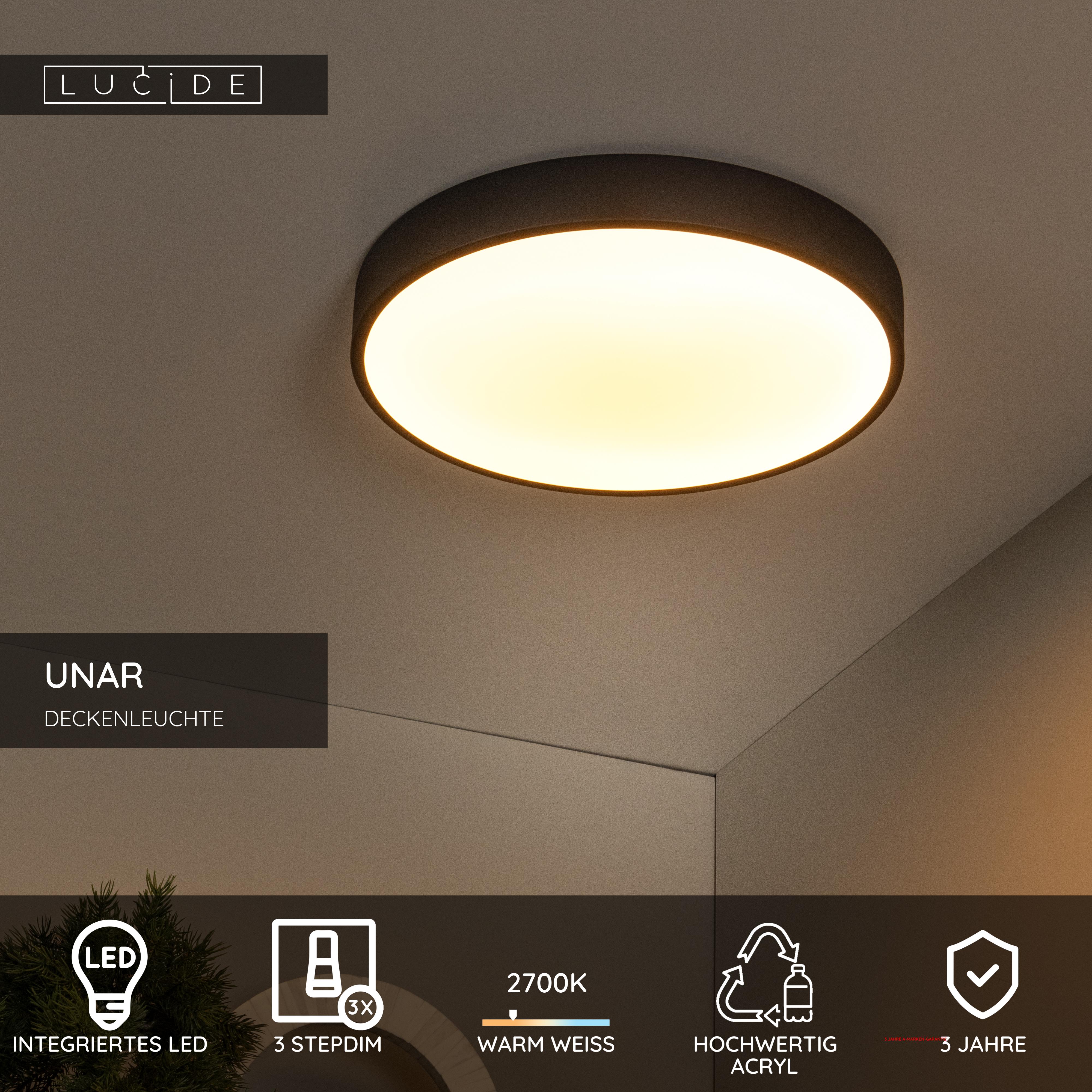 Lucide UNAR - Deckenleuchte - Ø 39,5 cm - LED 3 StepDim - 1x24W 2700K - Schwarz