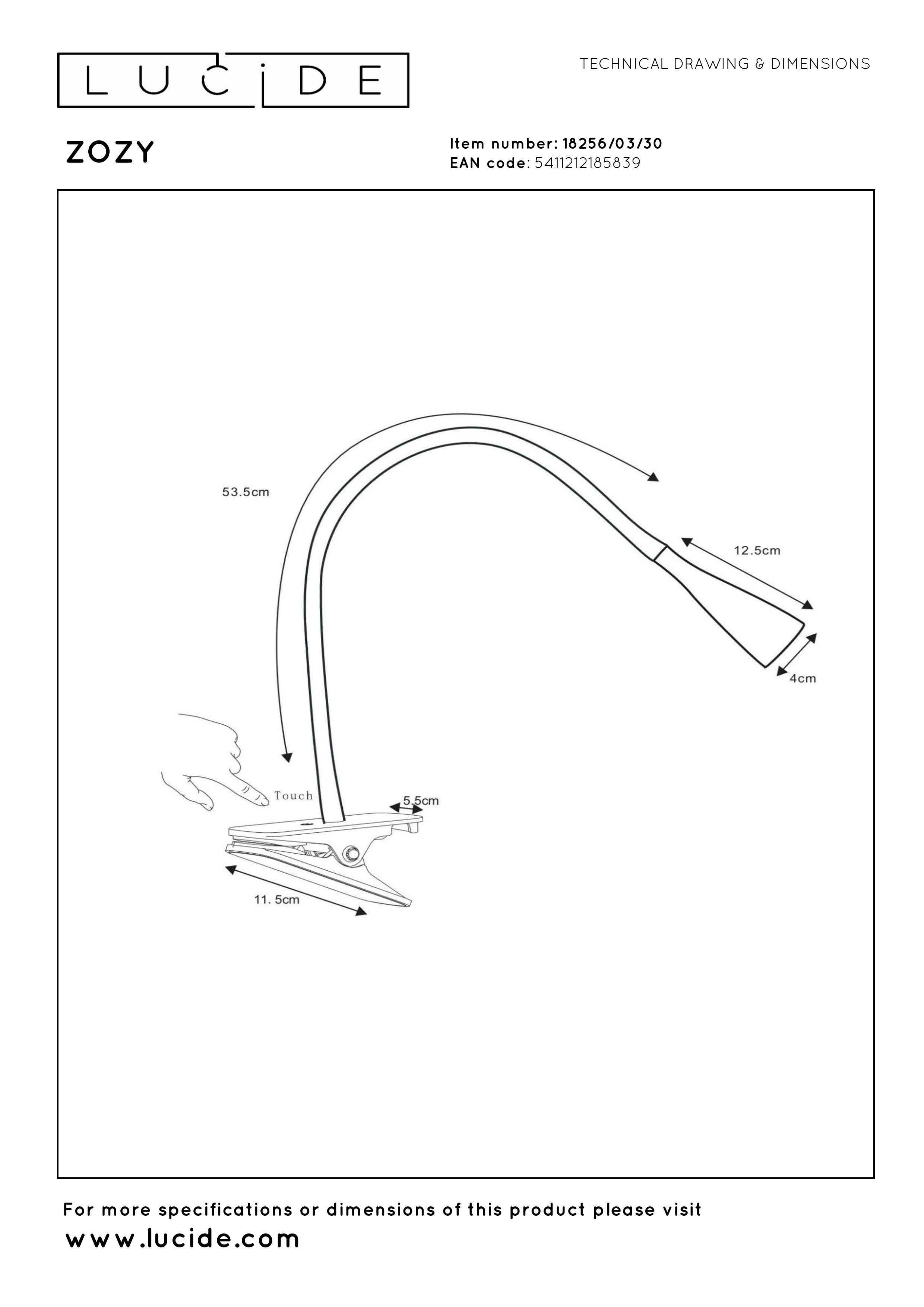 Lucide ZOZY - Klemmleuchte - LED 3 StepDim - 1x4W 3000K - Schwarz