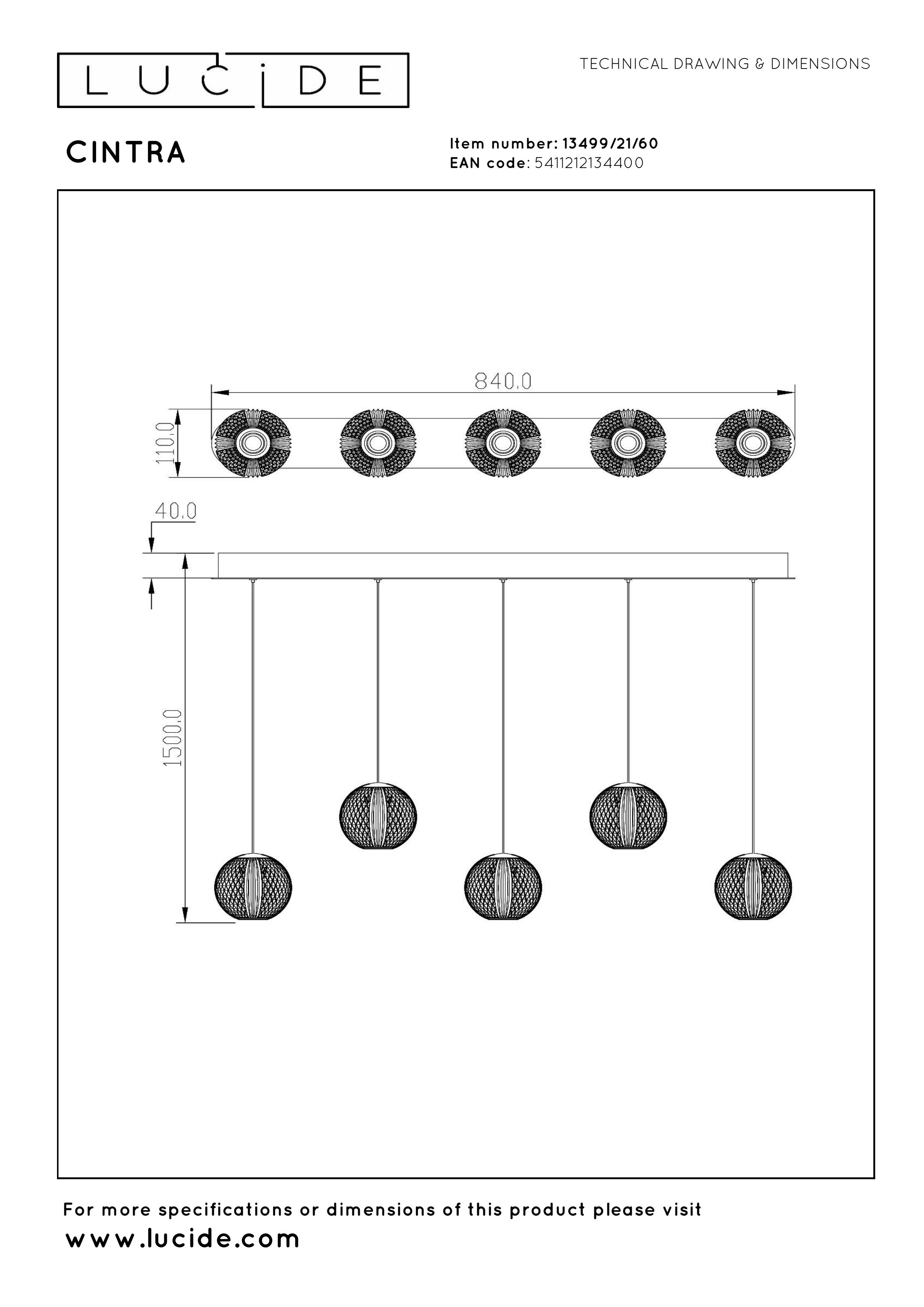 Lucide CINTRA - Pendelleuchten - LED Dim. - 5x4,7W 2700K - Transparent