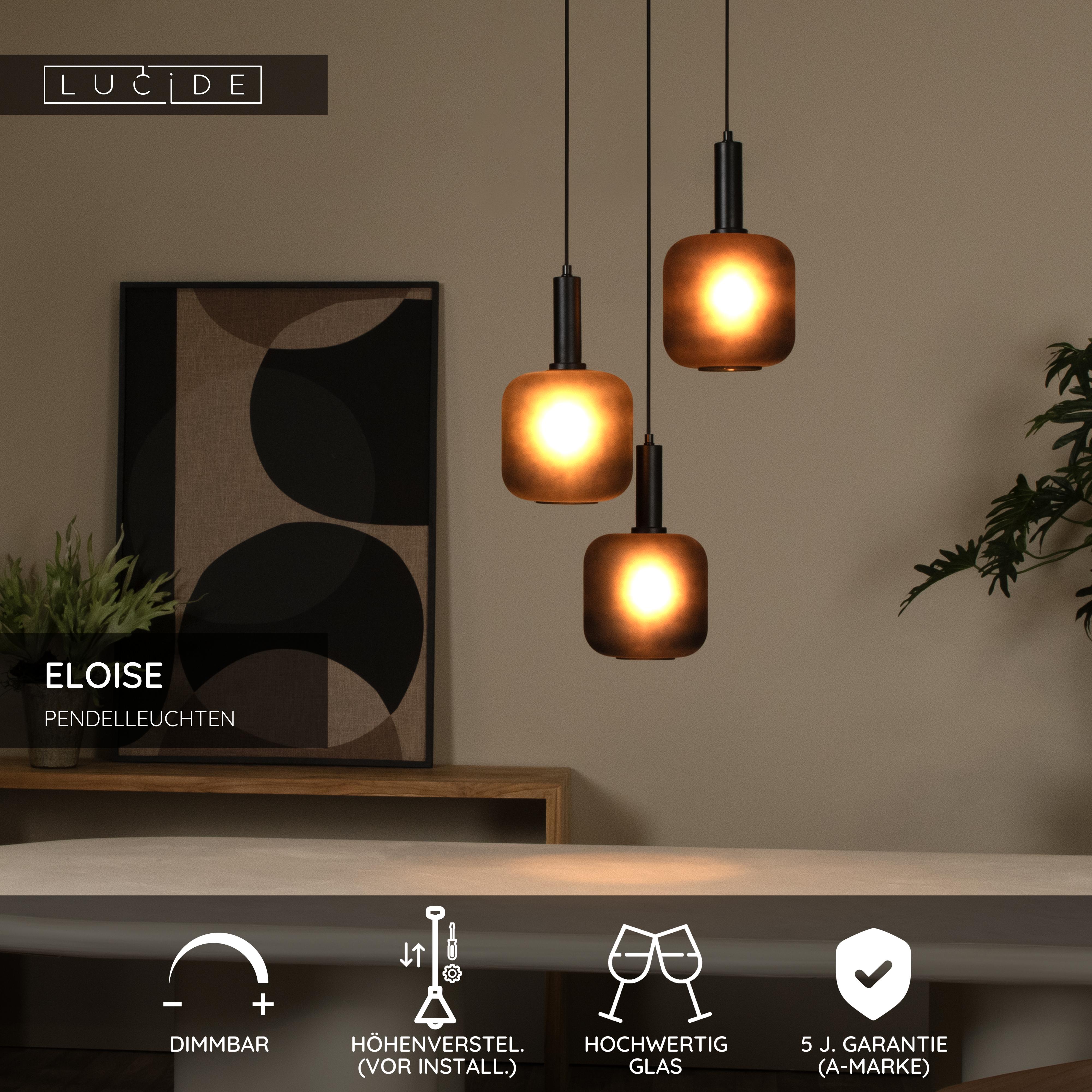 Verspielt, intim oder au serieux: Mit 3 Pendelleuchten aus geräuchertem Glas, hochwertigem Metall und einem verstellbaren Kabel aus Textil gibt Eloise in Ihrem Wohnzimmer den Ton an. Die Pendelleuchten - jeweils 21 Zentimeter im Durchmesser - sind aus hochwertigem Glas gefertigt. Die Lampe eignet sich sowohl als Blickfang als auch zur Schaffung einer gemütlichen Ecke und hat einen Durchmesser von 40 Zentimetern. Schließen Sie diese spektakuläre Pendelleuchte an einen externen Dimmer an und sorgen Sie bei Ihrer nächsten Dinnerparty für die richtige Stimmung.