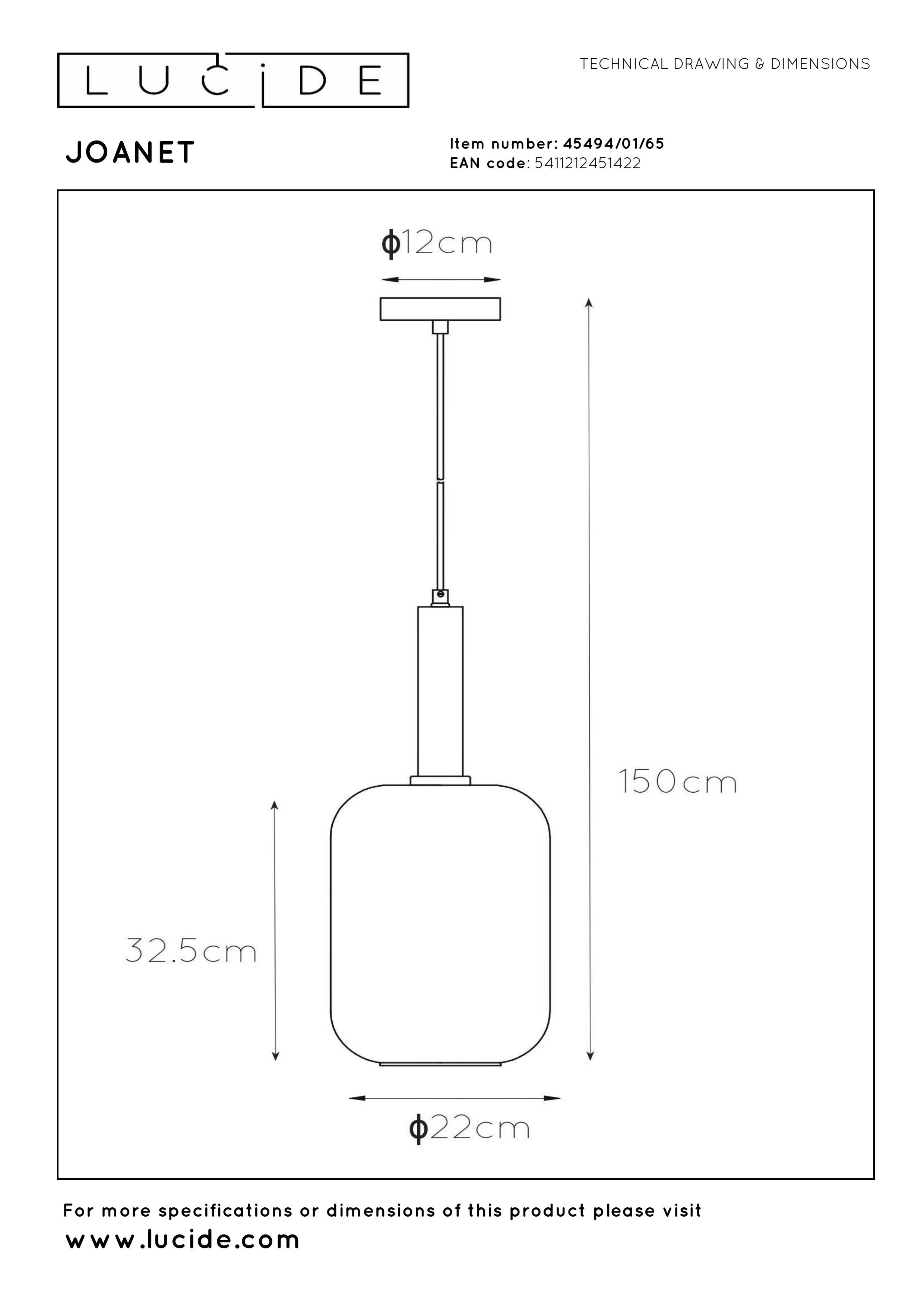 Lucide JOANET - Pendelleuchten - Ø 22 cm - 1xE27 - Rauchfarbe Grau