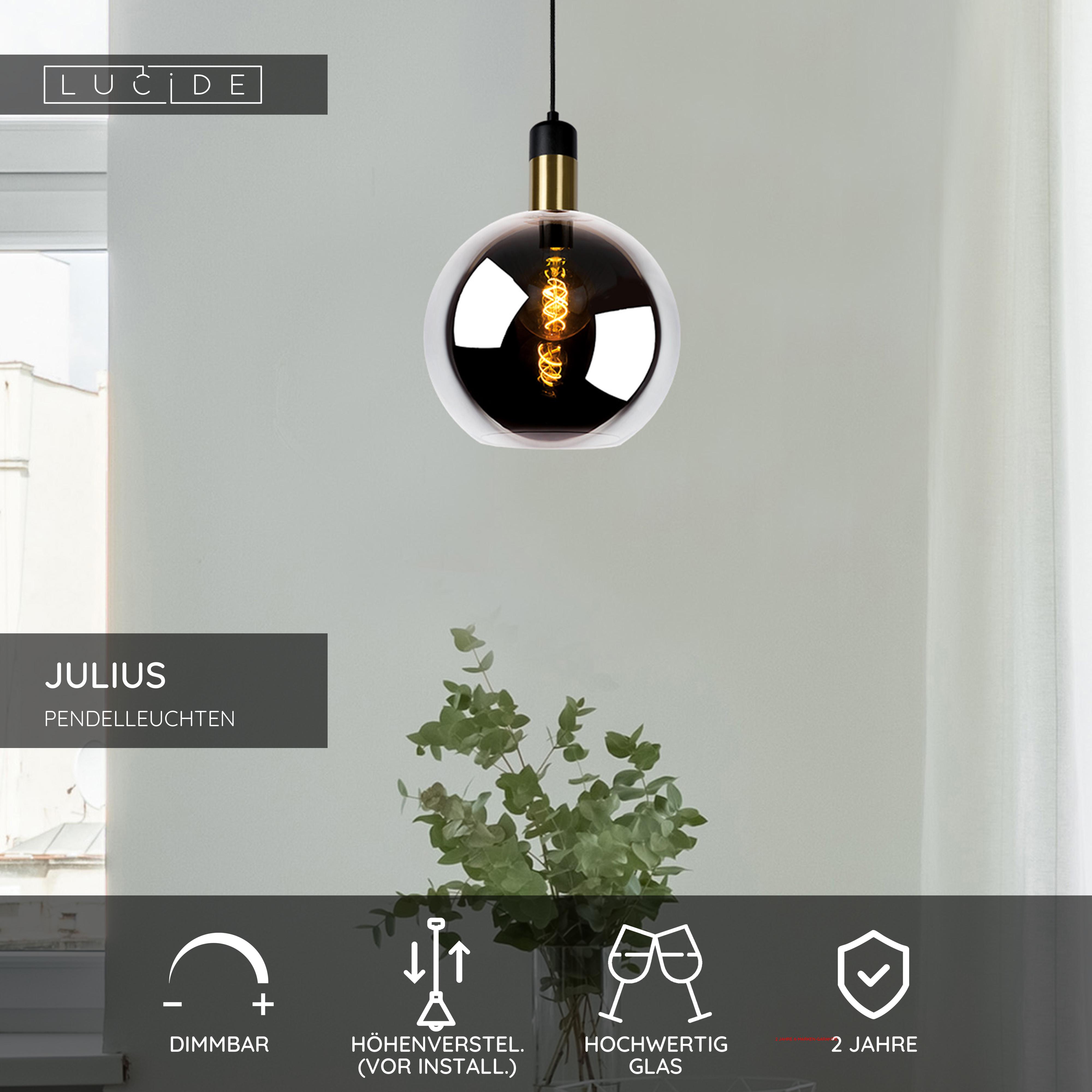 Lucide JULIUS - Pendelleuchten - Ø 28 cm - 1xE27 - Rauchfarbe Grau