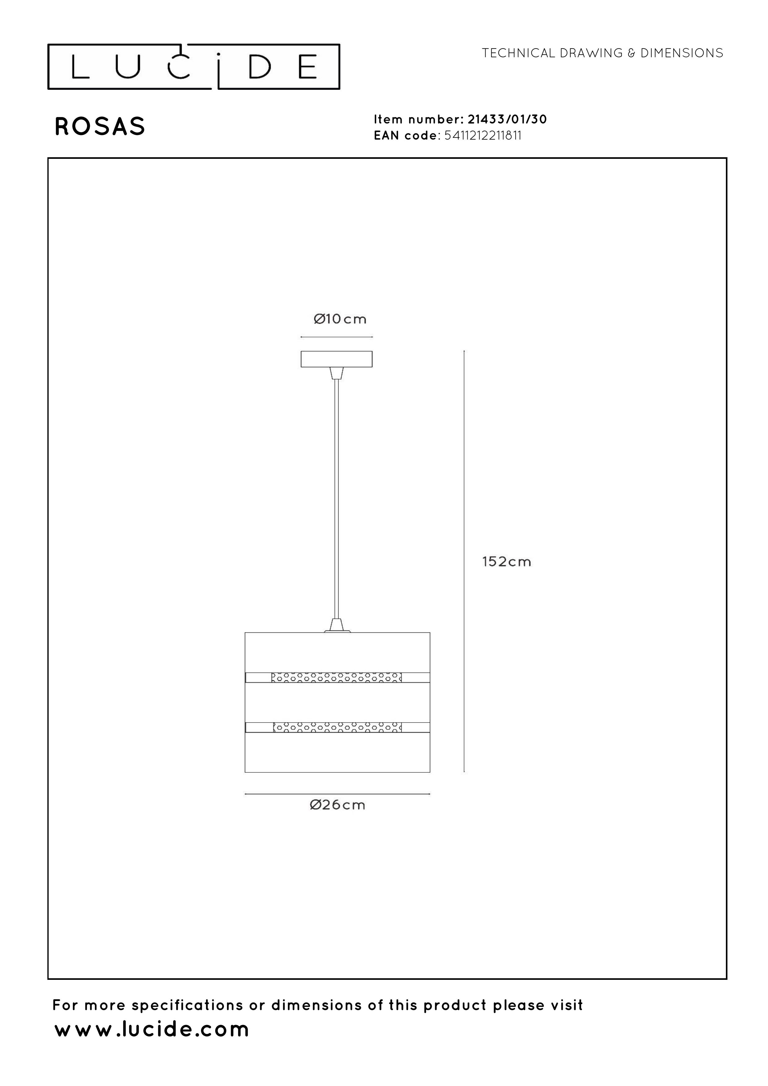 Lucide ROSAS - Pendelleuchten - Ø 26 cm - 1xE27 - Schwarz