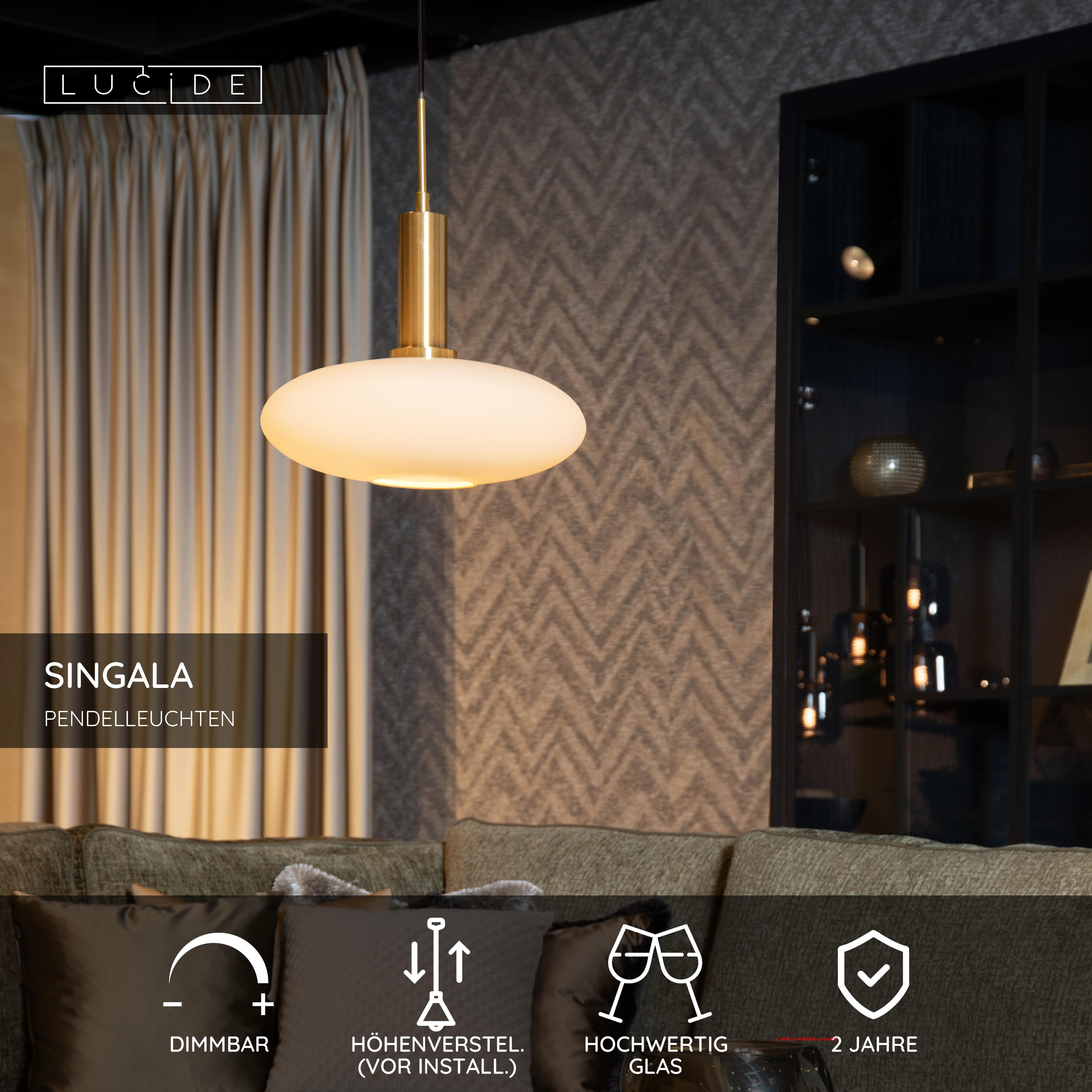 Mit Singala entscheiden Sie sich für sanfte Gemütlichkeit. Die Kombination aus Glas, Metall und Messing schafft eine elegante Pendelleuchte, die sowohl in modernen als auch in klassischen Interieurs besonders gut zur Geltung kommt. Singala passt somit in fast jeden Raum des Hauses. Sie können sie in Ihrem Schlafzimmer, Wohnzimmer oder in der Küche aufhängen. Die Höhe dieser Pendelleuchte lässt sich je nach Raum von 70 bis 169 Zentimetern einstellen. Die ovale Glaskugel, die den Lampenschirm formt, sorgt zu jeder Tageszeit für Atmosphäre. Vor allem, wenn Sie Singala an einen geeigneten Dimmer anschließen.