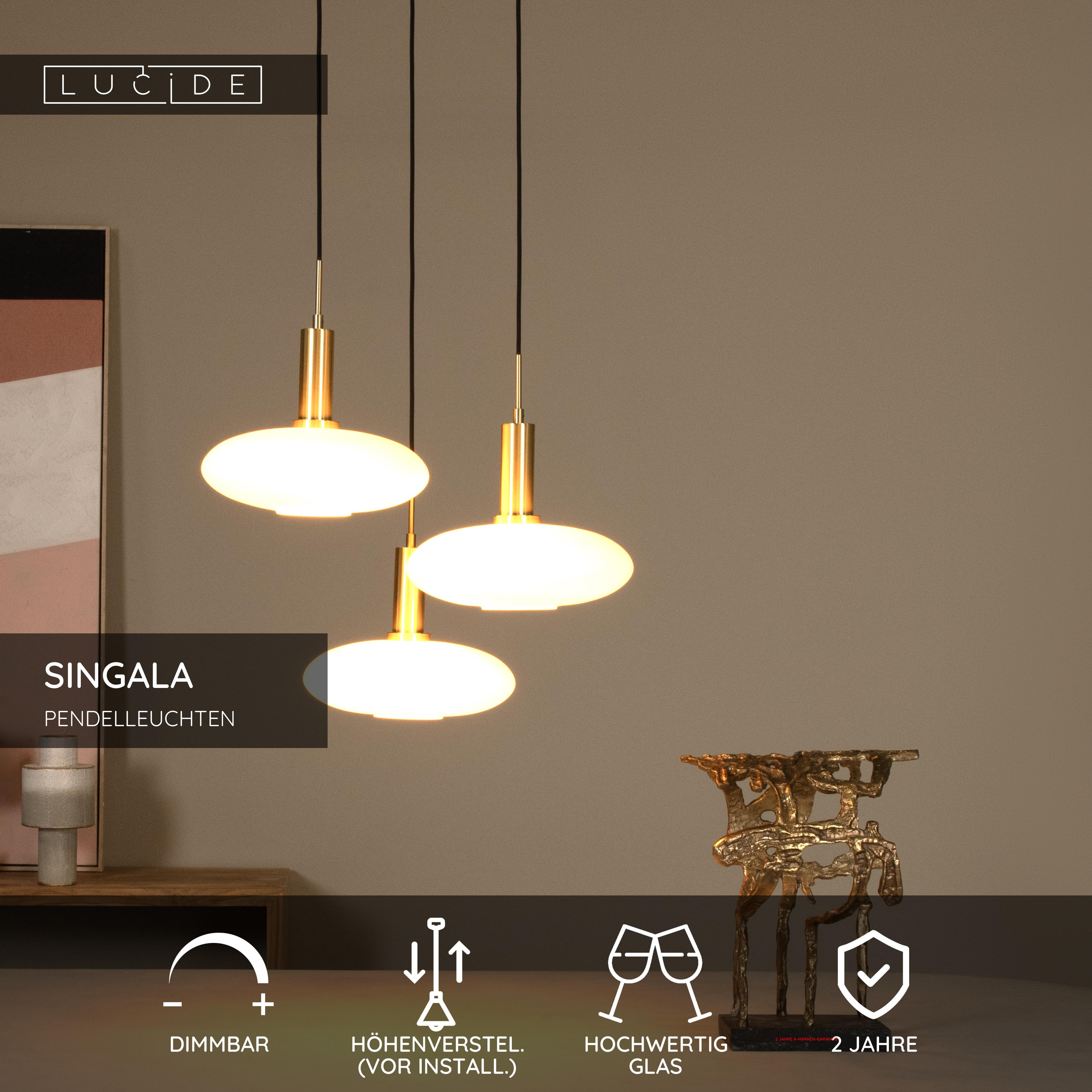 Mit Singala entscheiden Sie sich für sanfte Gemütlichkeit. Die Kombination aus Glas, Metall und Messing schafft eine elegante Pendelleuchte mit 3 Pendeln, die sowohl in modernen als auch in klassischen Interieurs besonders gut zur Geltung kommt. Singala passt somit in fast jeden Raum des Hauses. Die Höhe dieser Pendelleuchte lässt sich je nach Raum von 70 bis 169 Zentimetern einstellen. Die ovale Glaskugel, die bis zu 3 Mal den Lampenschirm bildet, sorgt zu jeder Tageszeit für Atmosphäre. Vor allem, wenn Sie Singala an einen geeigneten Dimmer anschließen.