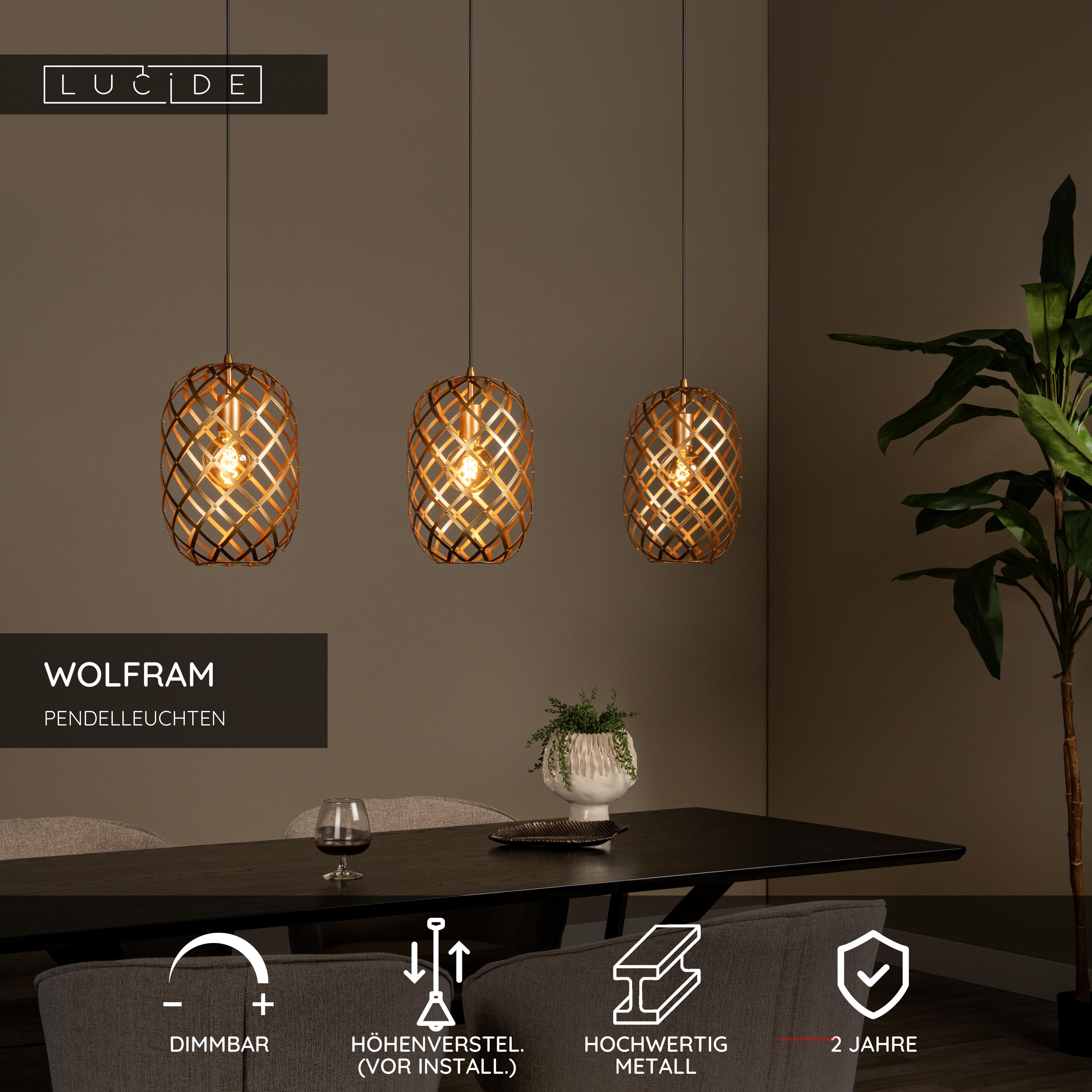 Lucide WOLFRAM - Pendelleuchten - 3xE27 - Mattes Gold / Messing