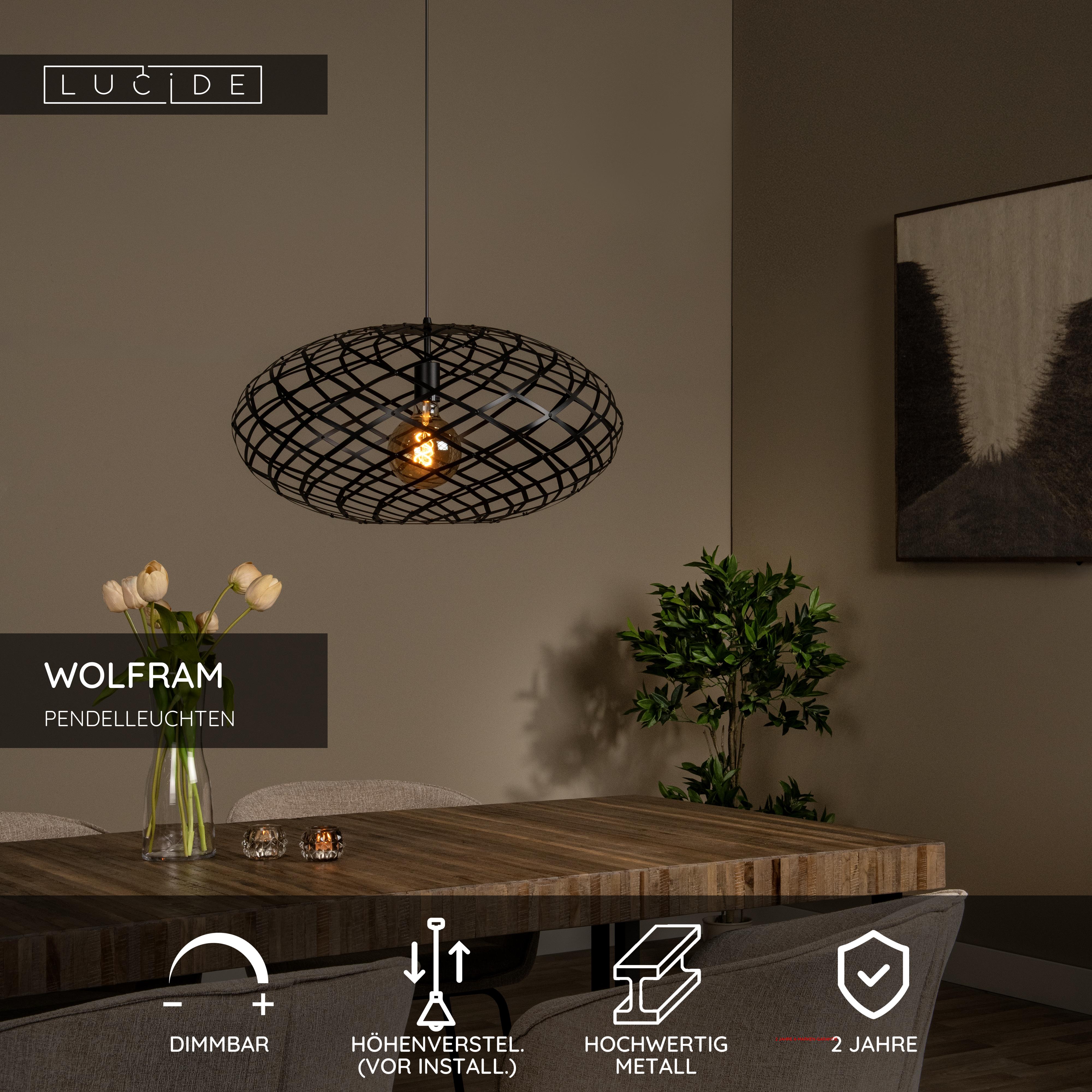 Lucide WOLFRAM - Pendelleuchten - Ø 65 cm - 1xE27 - Schwarz