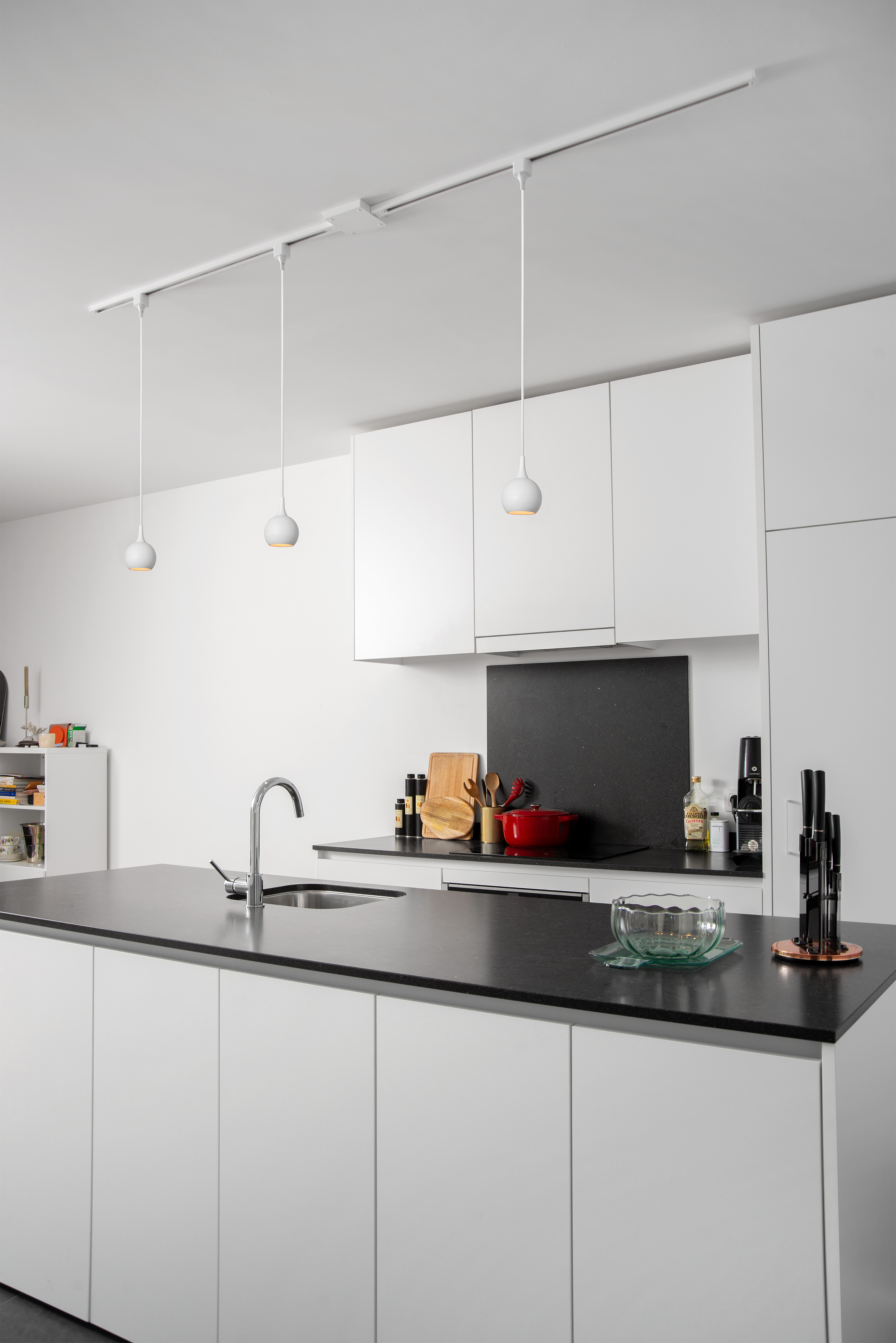 Wird diese trendige Hängelampe Ihr neuer Favori? Setzen Sie ein Kunstwerk ins Rampenlicht, beleuchten Sie Ihren Couchtisch oder tauchen Sie Ihre Küchenspüle in Atmosphäre. Favori ist flexibel in der Anwendung. Die Hängelampe ist höhenverstellbar und kann dank des TRACK-Systems auch verschoben werden, um das richtige Ambiente in Ihrer Wohnung zu schaffen. Die Lichtquelle ist in einer abgeflachten Kugel untergebracht, die oben in einen Messingkabelanschluss übergeht.
