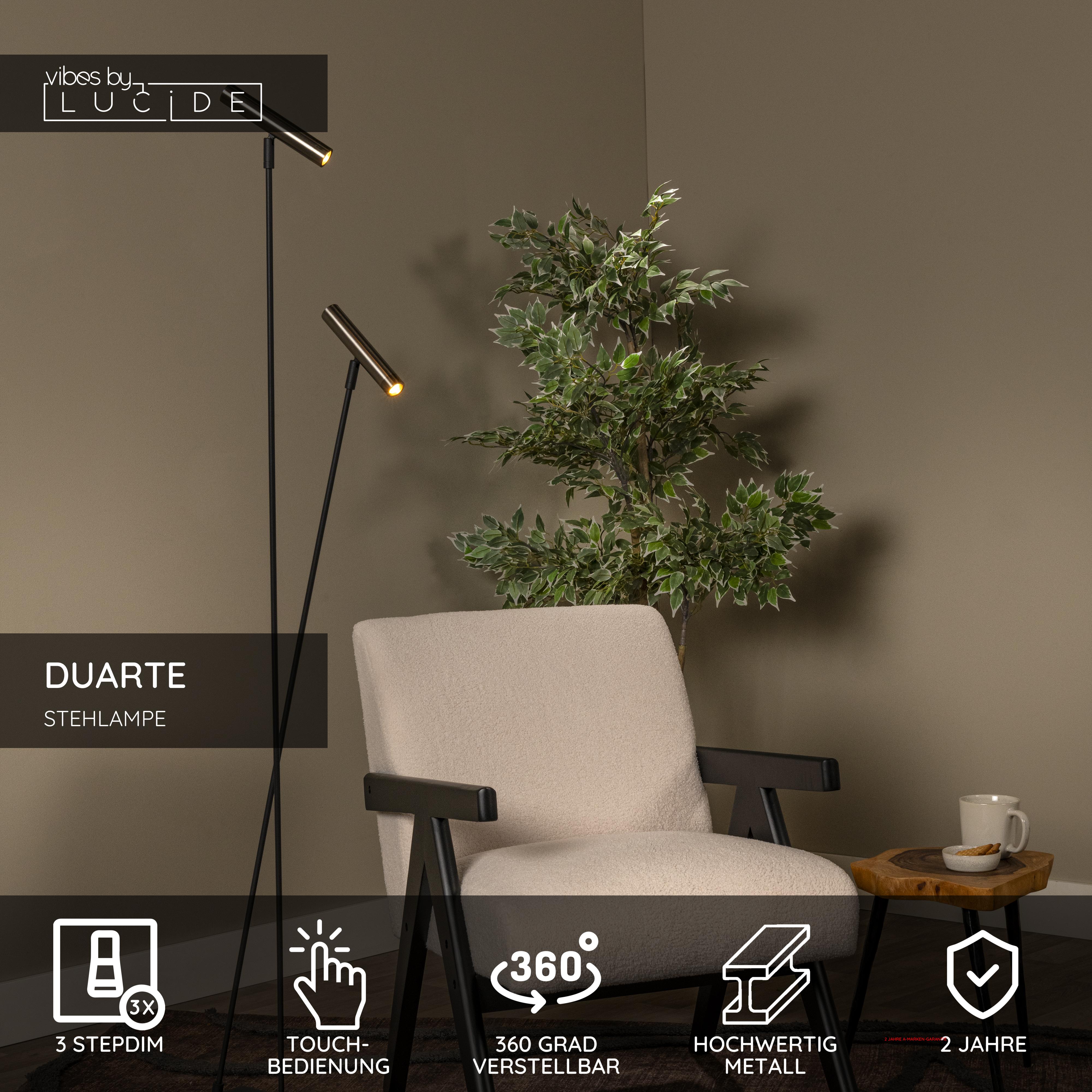 Die DUARTE Stehlampe von Lucide vereint moderne Eleganz mit innovativer Technik. Diese stilvolle Stehleuchte setzt nicht nur ein starkes Statement in deinem Interieur, sondern bietet dank ihrer zwei verstellbaren Lampenköpfe auch optimale Funktionalität. Mit einer einfachen Berührung des integrierten Touch-Dimmers erzeugst du im Handumdrehen die gewünschte Atmosphäre. Geeignet für energieeffiziente LED-Leuchtmittel (2x G9, 4W), spendet diese Stehlampe warmes, stimmungsvolles Licht. Mit einer Breite von 18 cm, einer Tiefe von 28 cm und einer Höhe von 163 cm passt DUARTE harmonisch in verschiedenste Räume. Entdecke selbst den Komfort und das Design dieser vielseitigen Stehleuchte!