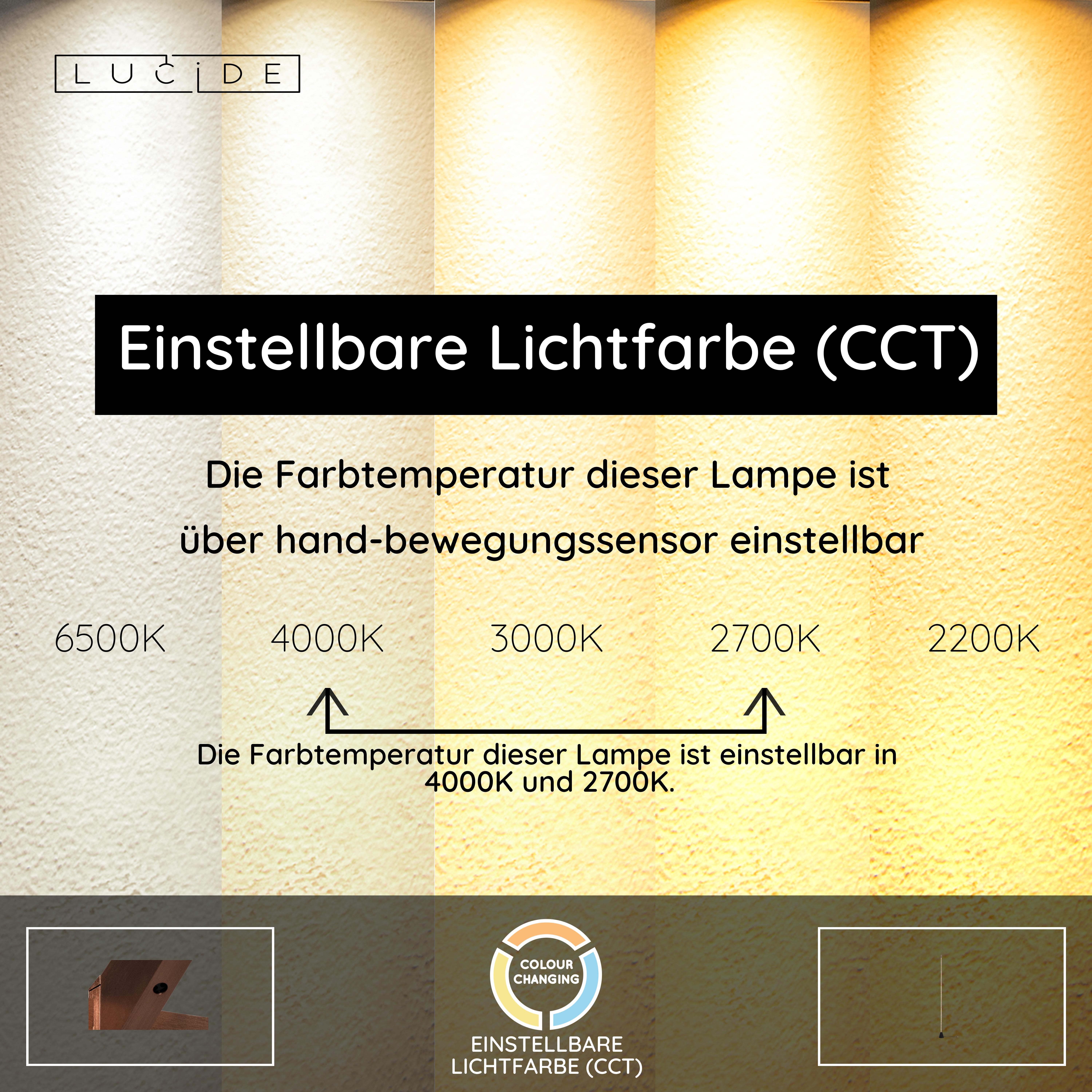 - Farbtemperatur einstellbar über Hand-Bewegungssensor (2700K-4000K)