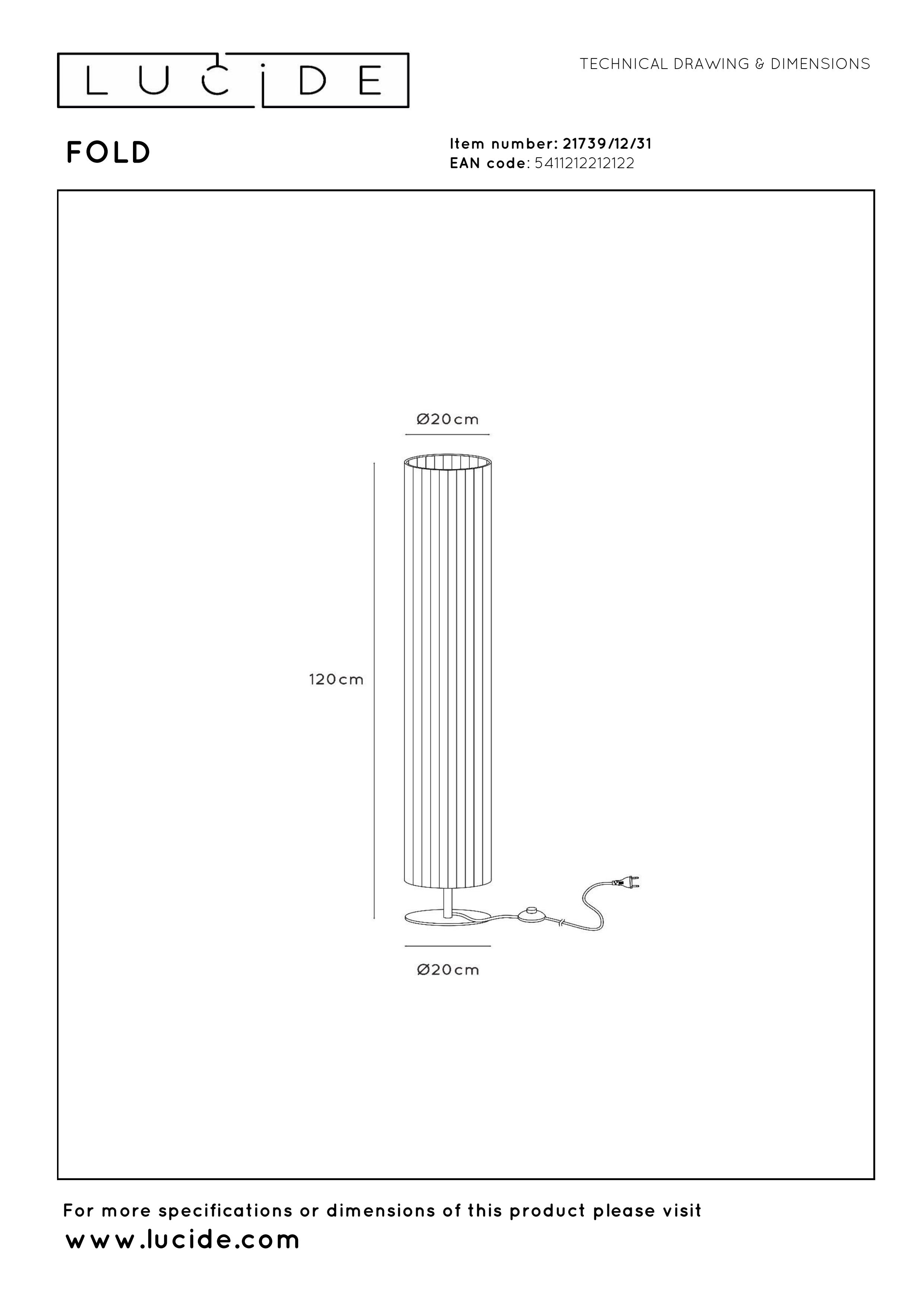 Lucide FOLD - Stehlampe - Ø 20 cm - 2xE27 - Weiß