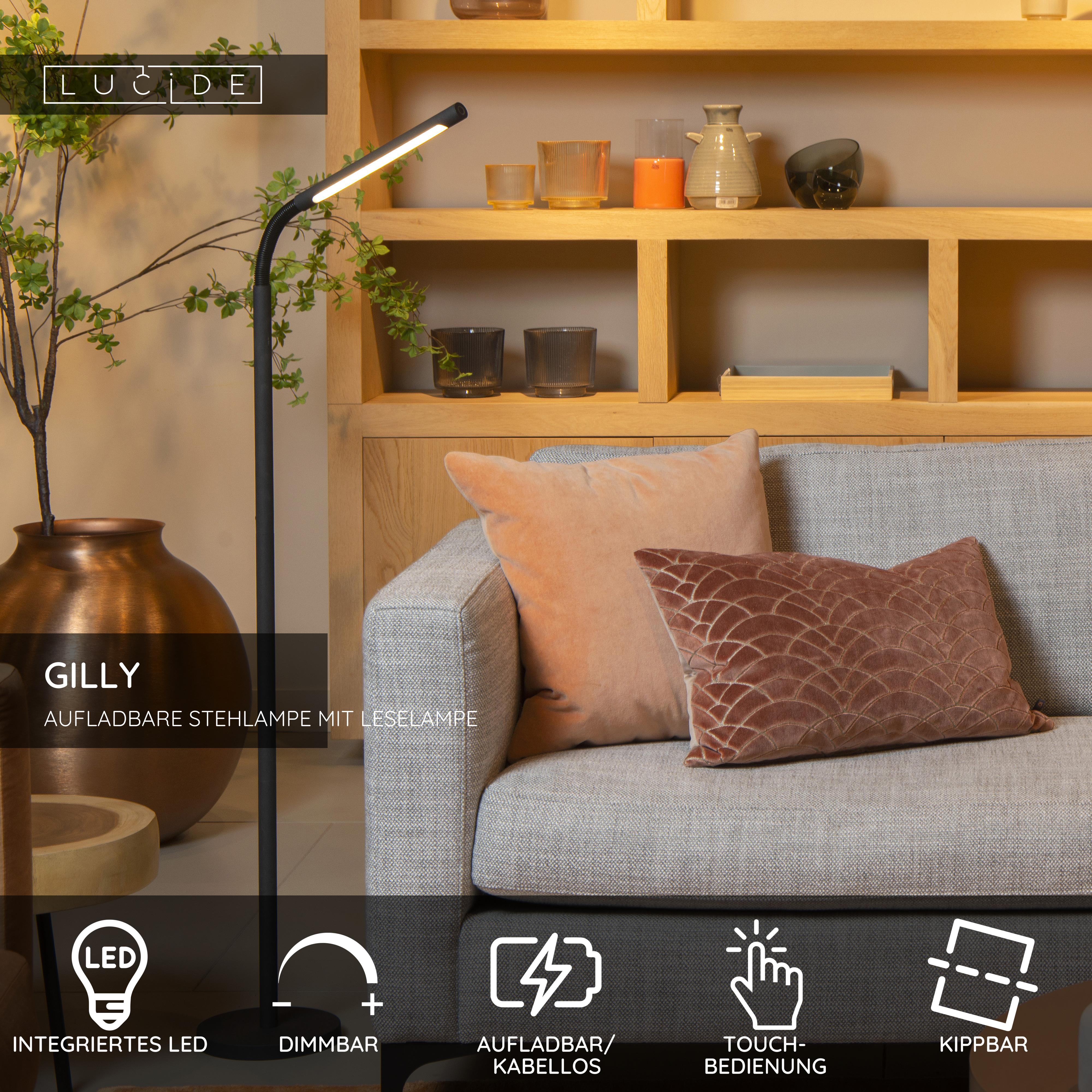 Lucide GILLY - wiederaufladbare Stehlampe Mit Leselampe - Akku/Batterie - LED Dim. - 1x6W 2700K - Schwarz