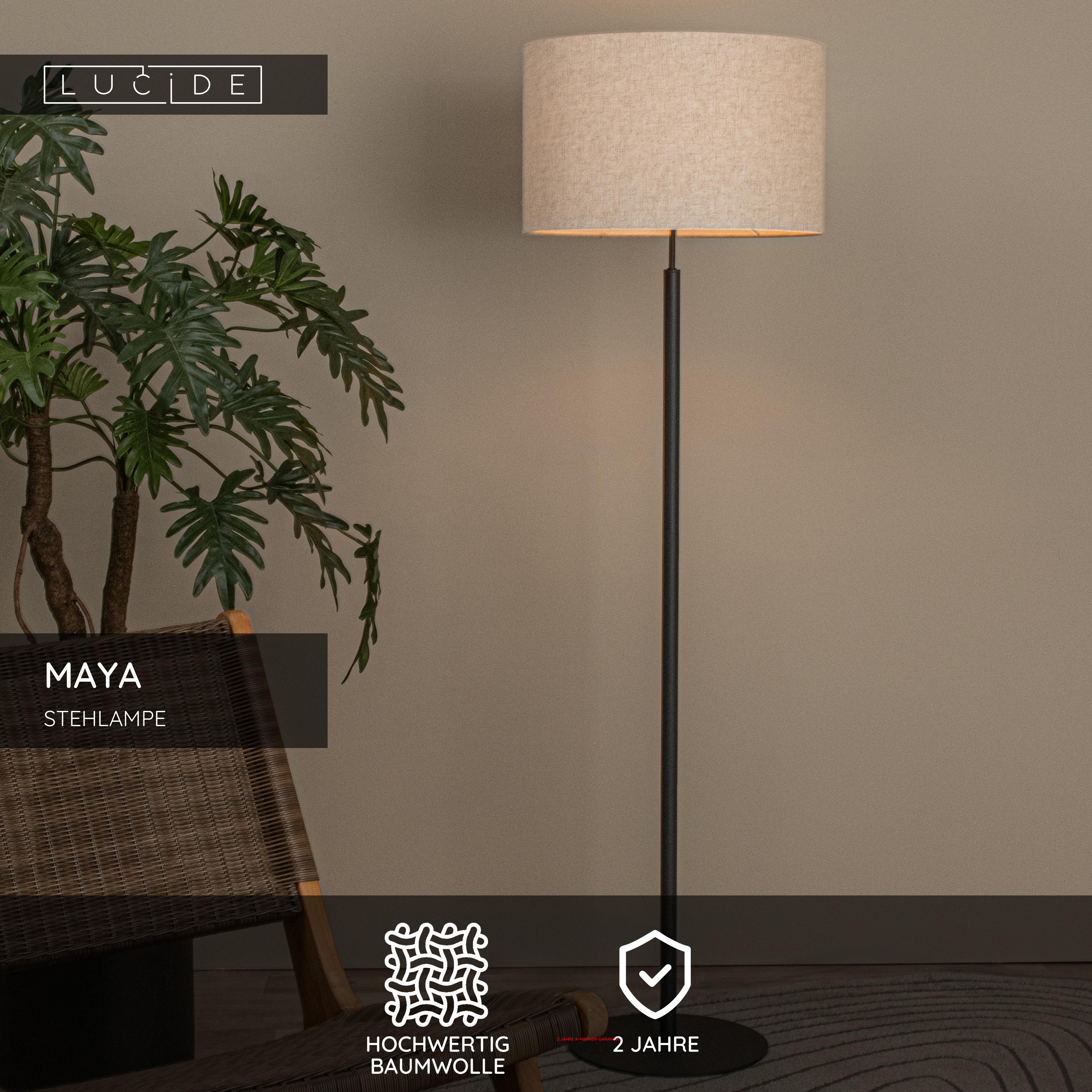 Eine klassische Stehlampe bringt Atmosphäre und Gemütlichkeit in Ihr Wohnzimmer. Der schlanke Sockel von Maya geht in einen eleganten Lampenschirm aus Baumwolle über und verbreitet Licht - und Gemütlichkeit - in Ihrem Wohn- oder Schlafzimmer. Mit einer Höhe von 150 cm und einem Durchmesser von 45 cm ist Maya die perfekte Leselampe neben dem Sofa oder ein zusätzlicher Lichtpunkt im Flur. Mit einer eleganten Stoffschnur von 200 cm Länge können Sie Maya frei platzieren, wo immer Sie wollen.