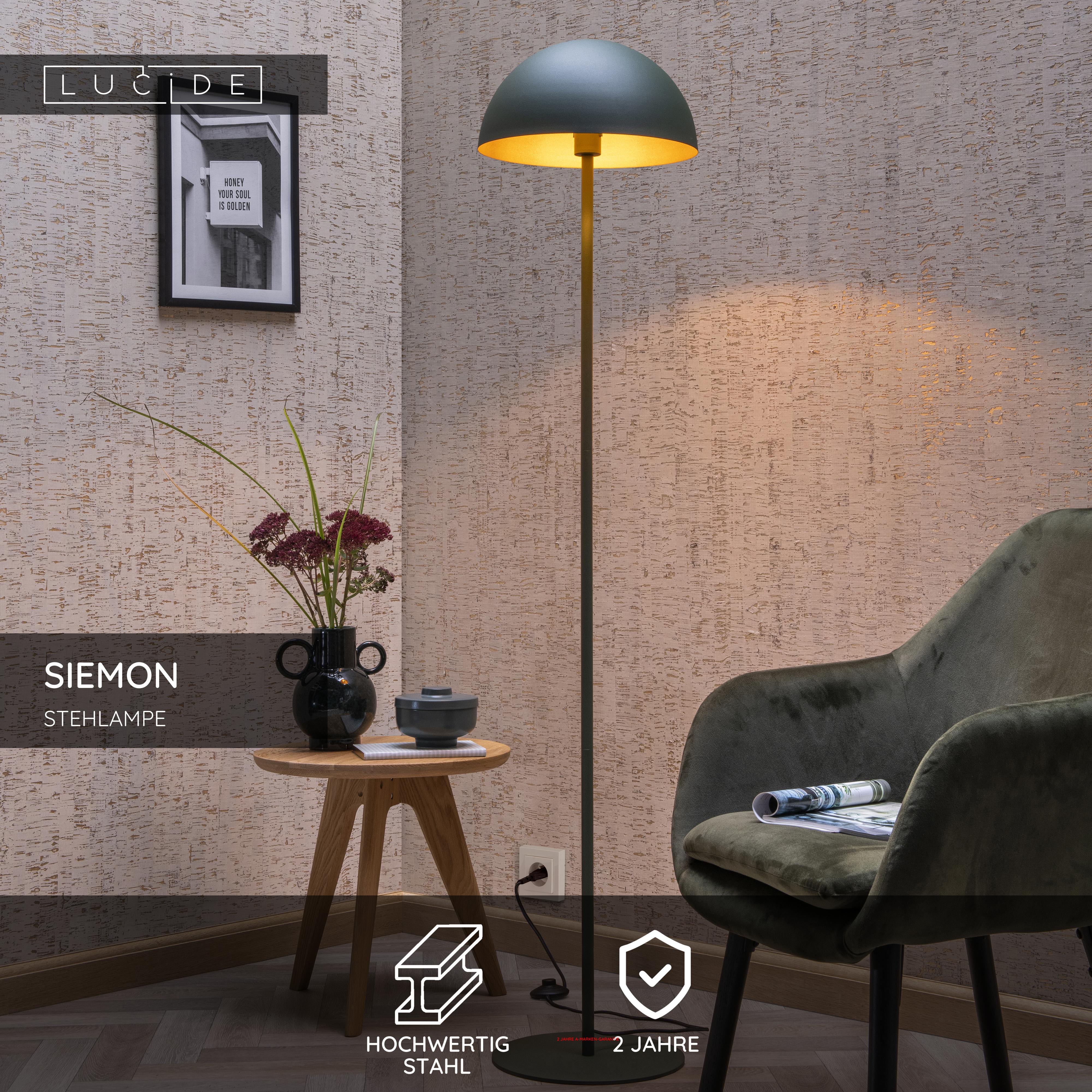 Zwei Top-Elemente für eine gelungene Stehleuchte in Ihrem Wohnzimmer? Das sind die Retro-Vibes und das moderne Aussehen von Siemon. Diese Stehleuchte ist aus hochwertigem Stahl gefertigt und hat eine Höhe von 160 Zentimetern. Durch sein Design wirkt Siemon niedlich und modern zugleich. In der Mitte des halbrunden Lampenschirms befindet sich die Lichtquelle. Das Licht spiegelt sich mühelos an den Wänden des Schirms. Das macht die Stehlampe zu einer angenehmen Erscheinung in Ihrem Interieur. Schalten Sie Siemon mit dem Schalter im Kabel ein und aus.
