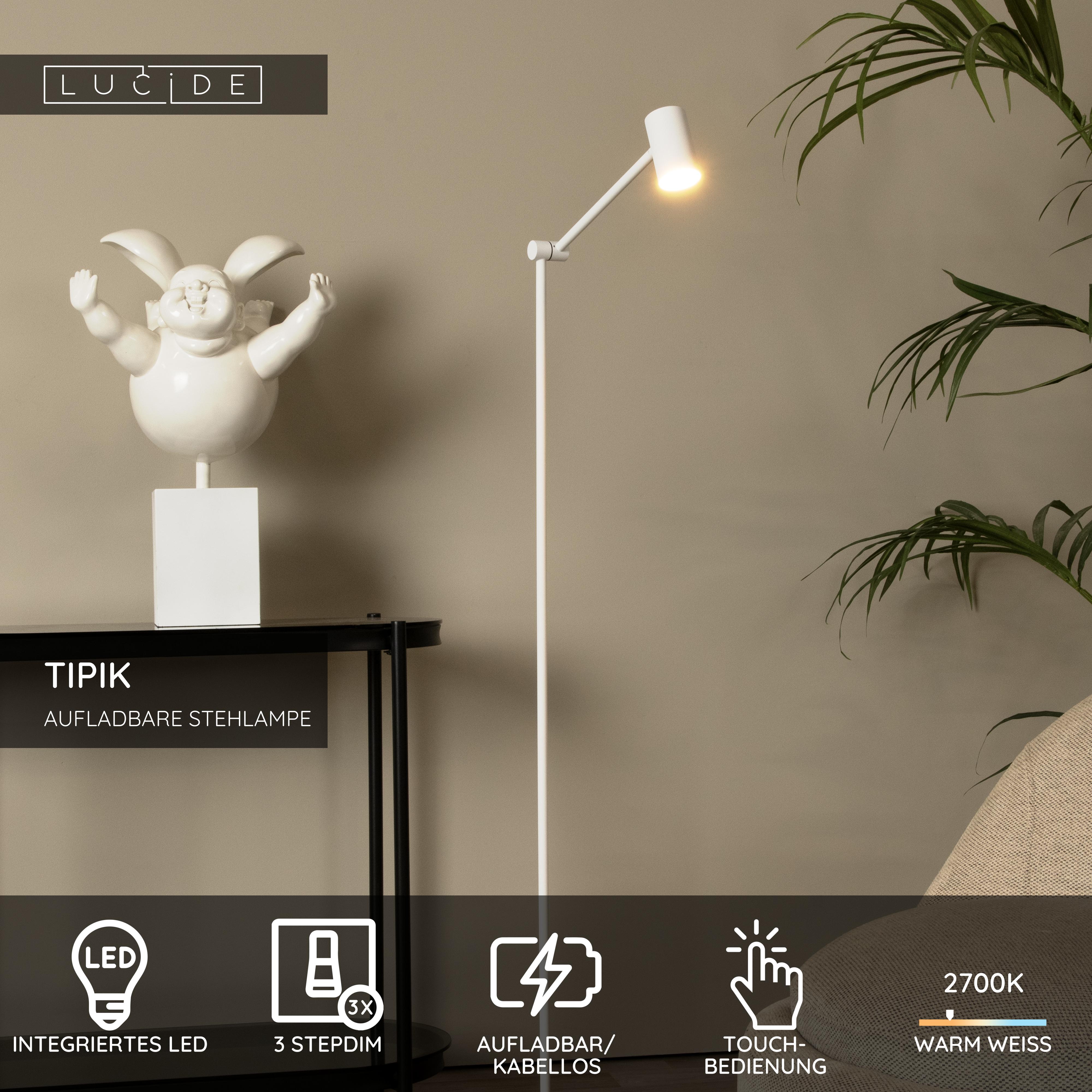 Lucide TIPIK - wiederaufladbare Stehlampe - Akku/Batterie - LED 3 StepDim - 1x3W 2700K - Weiß