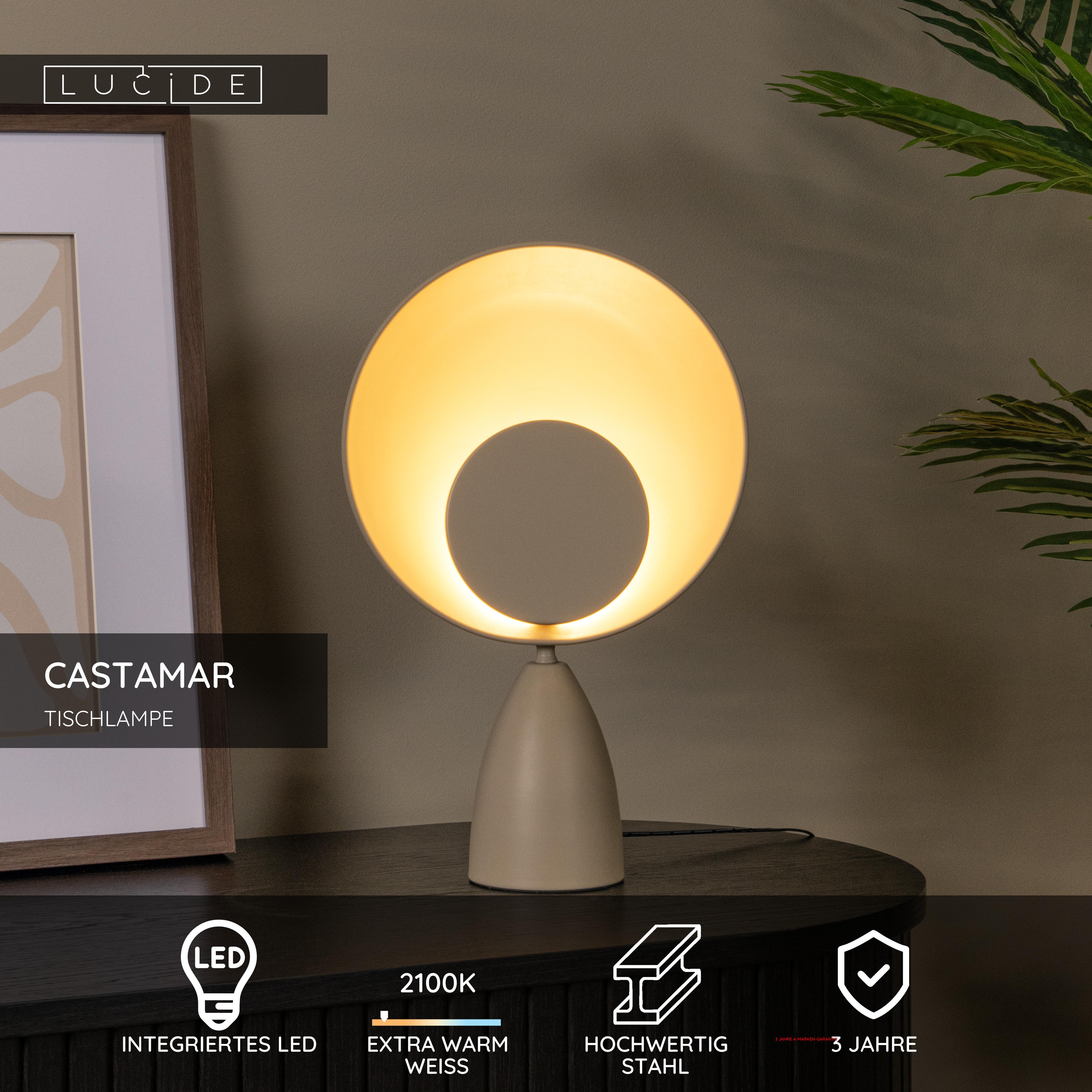 Lucide CASTAMAR - Tischlampe - Ø 25,5 cm - LED - 1x8W 2100K - Taupe